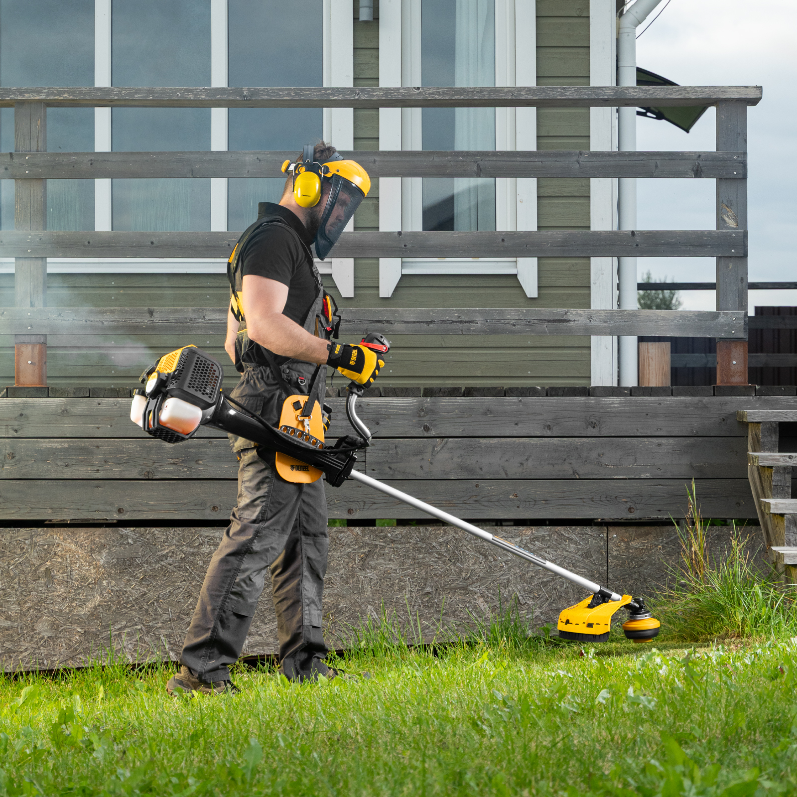 Бензотриммер рассчитан на интенсивные нагрузки, поэтому его также можно использовать для заготовки сена в сельском хозяйстве или для ухода за придомовыми территориями в городе. Двигатель мощностью 3 л.с. и частота вращения оснастки 9500 об/мин позволяют эффективно справляться с большим объемом работ — за 1 час можно обработать участок площадью до 20 соток. Штанга неразъемная, на нее уже установлен редуктор и корпус сцепления, что упрощает финальную сборку инструмента.