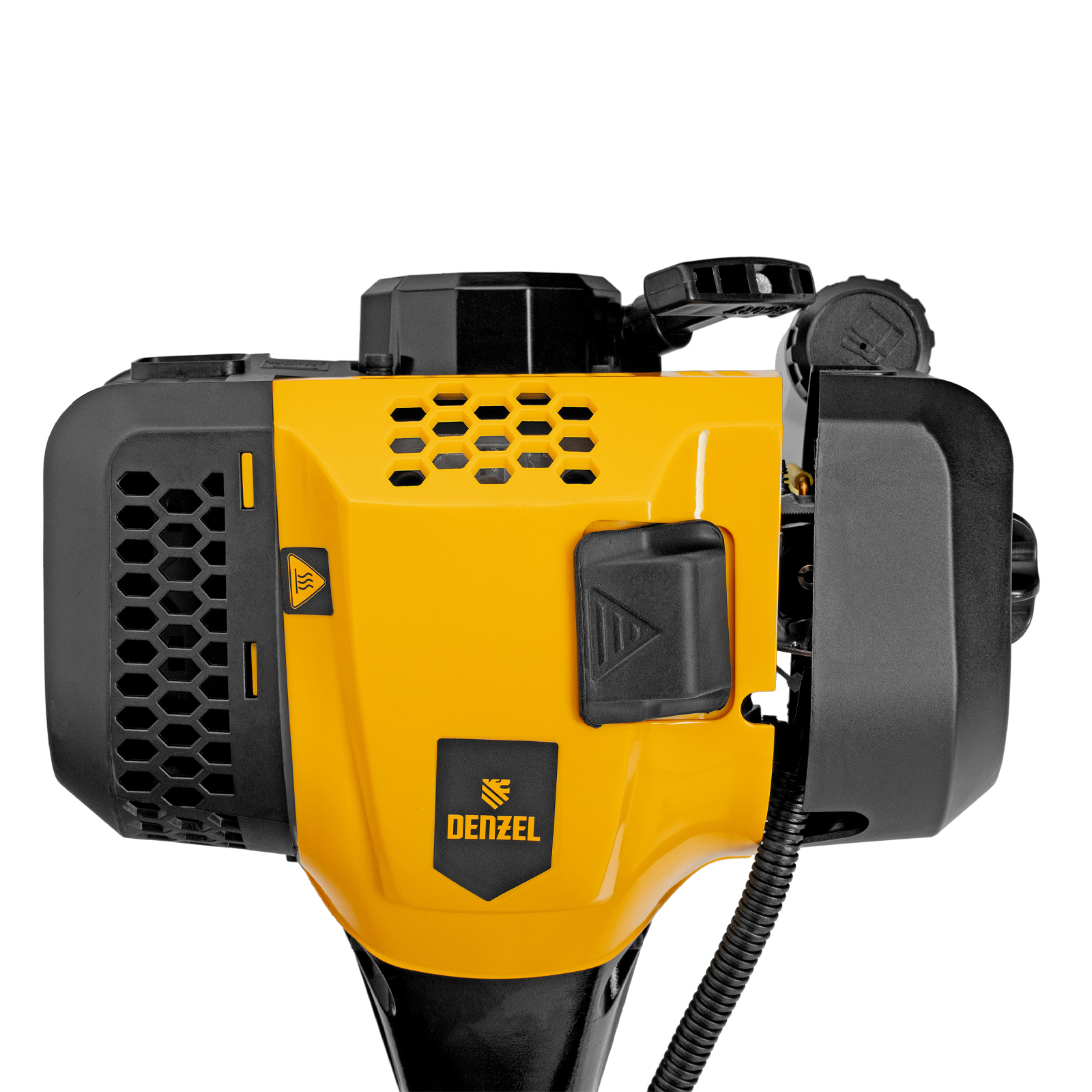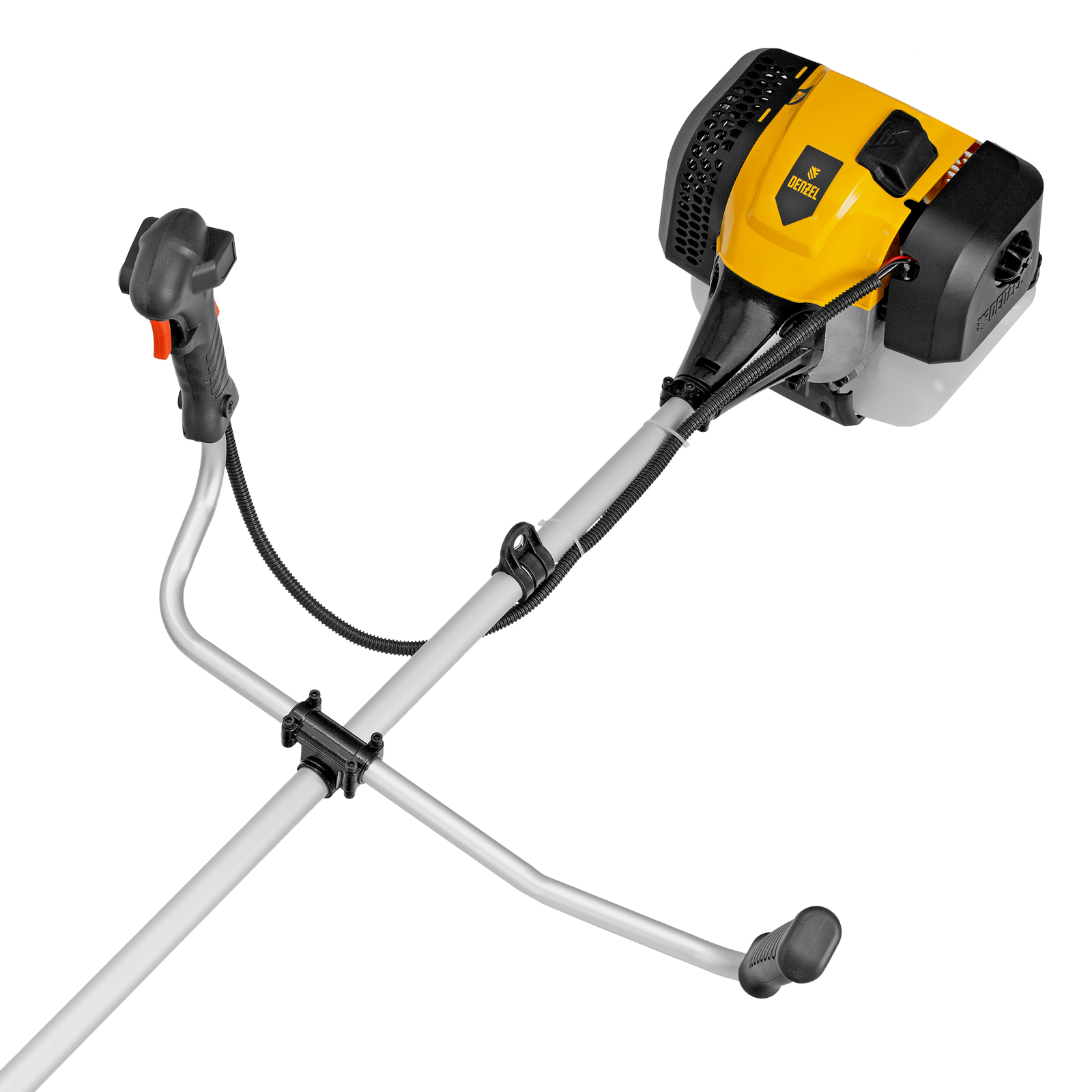 Бензиновый триммер Denzel DGT-520 96238 с неразъемной штангой состоит из 2 частей и оснащен мощным двигателем объемом 52 см3 и мощностью 3 л. с., при этом отличается легкостью и экономичным расходом топлива. Детали двигателя покрыты хромом, что значительно увеличивает ресурс инструмента. Усиленная катушка из полиамида, трехлопастный нож и пильный диск позволяют легко справляться со скашиванием травы всех типов, в том числе с жесткими древовидными стеблями (полыни, крапивы, лебеды, борщевика), а также срезанием кустарника и молодых побегов деревьев с диаметром стволов до 10 мм. Триммер удобен для работы в недоступных для колесной косилки местах. Хорошая сбалансированность инструмента, современная антивибрационная система, подвесной двухплечевой ремень и удобное управление позволяют работать с комфортом даже продолжительное время.