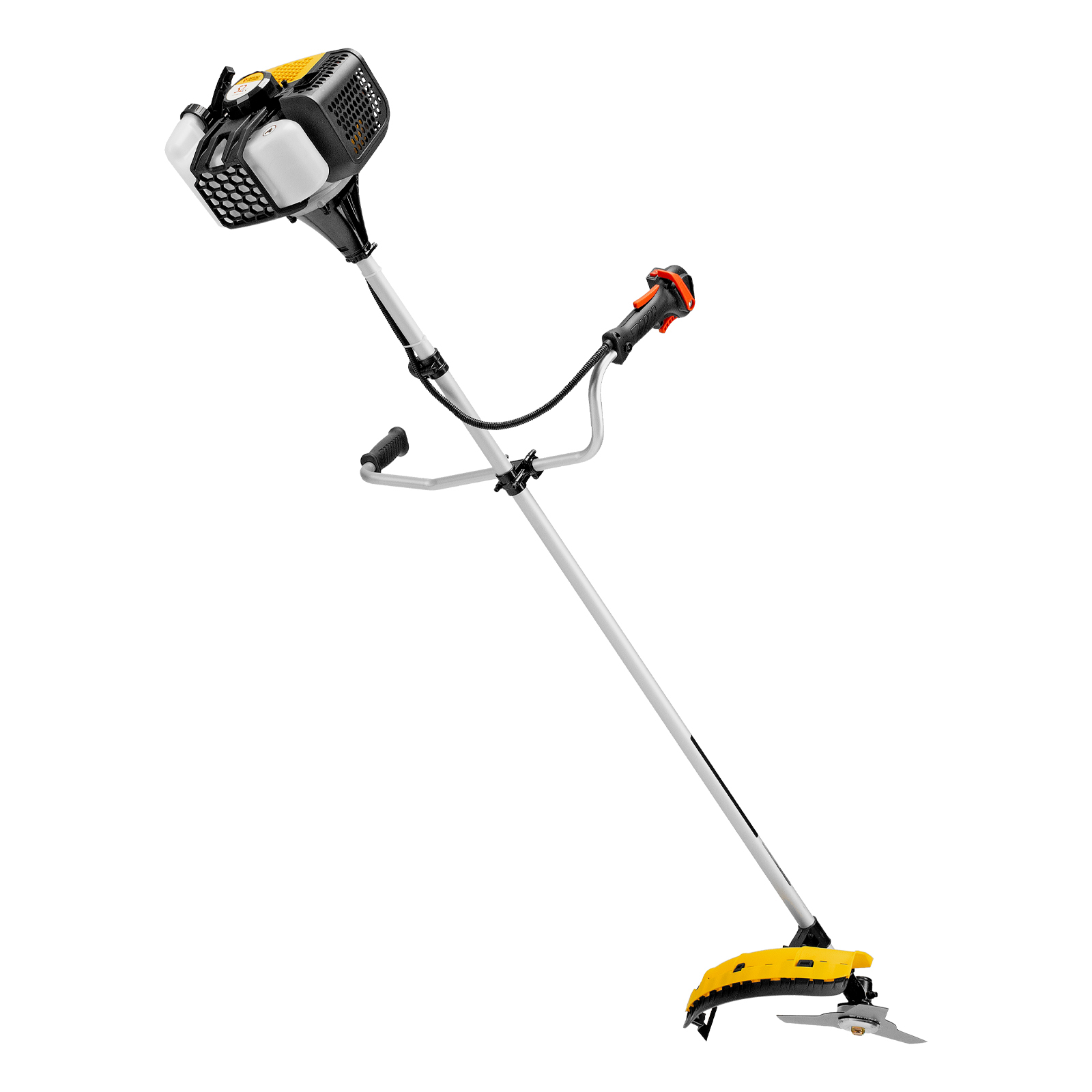 - Комфортная работа — триммер оснащен велосипедными ассиметричными ручками для наиболее удобного захвата.