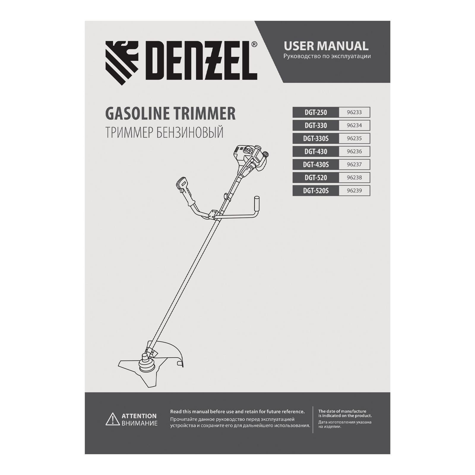 - Дополнительные возможности — можно приобрести и установить на триммер диск Denzel 96323 для быстрого удаления растительности с жесткими стеблями, 96328 для скашивания молодых побегов кустарника диаметром до 3 мм