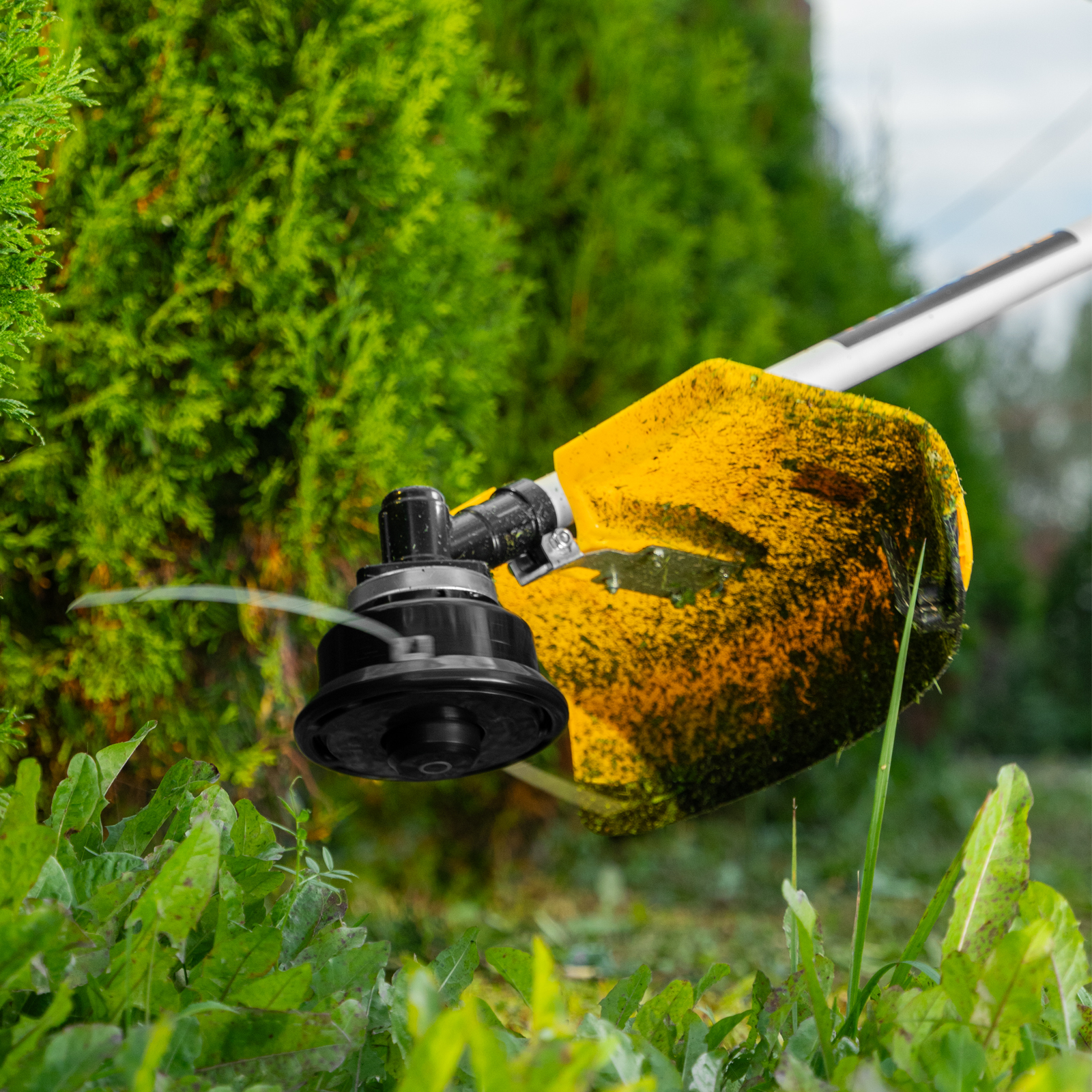 - Полуавтоматическая катушка — чтобы обновить леску, достаточно слегка ударить катушкой по земле, не снижая оборотов двигателя.