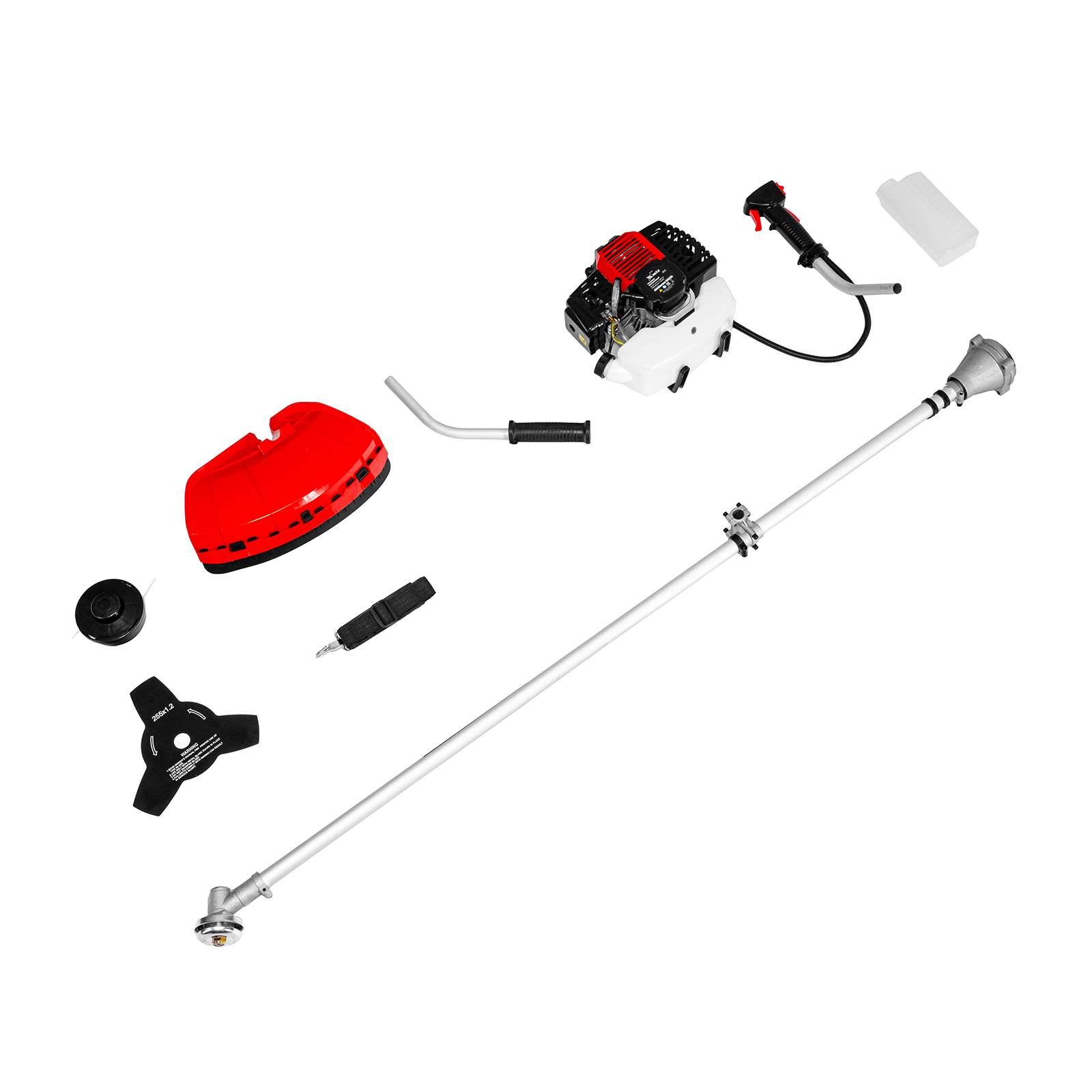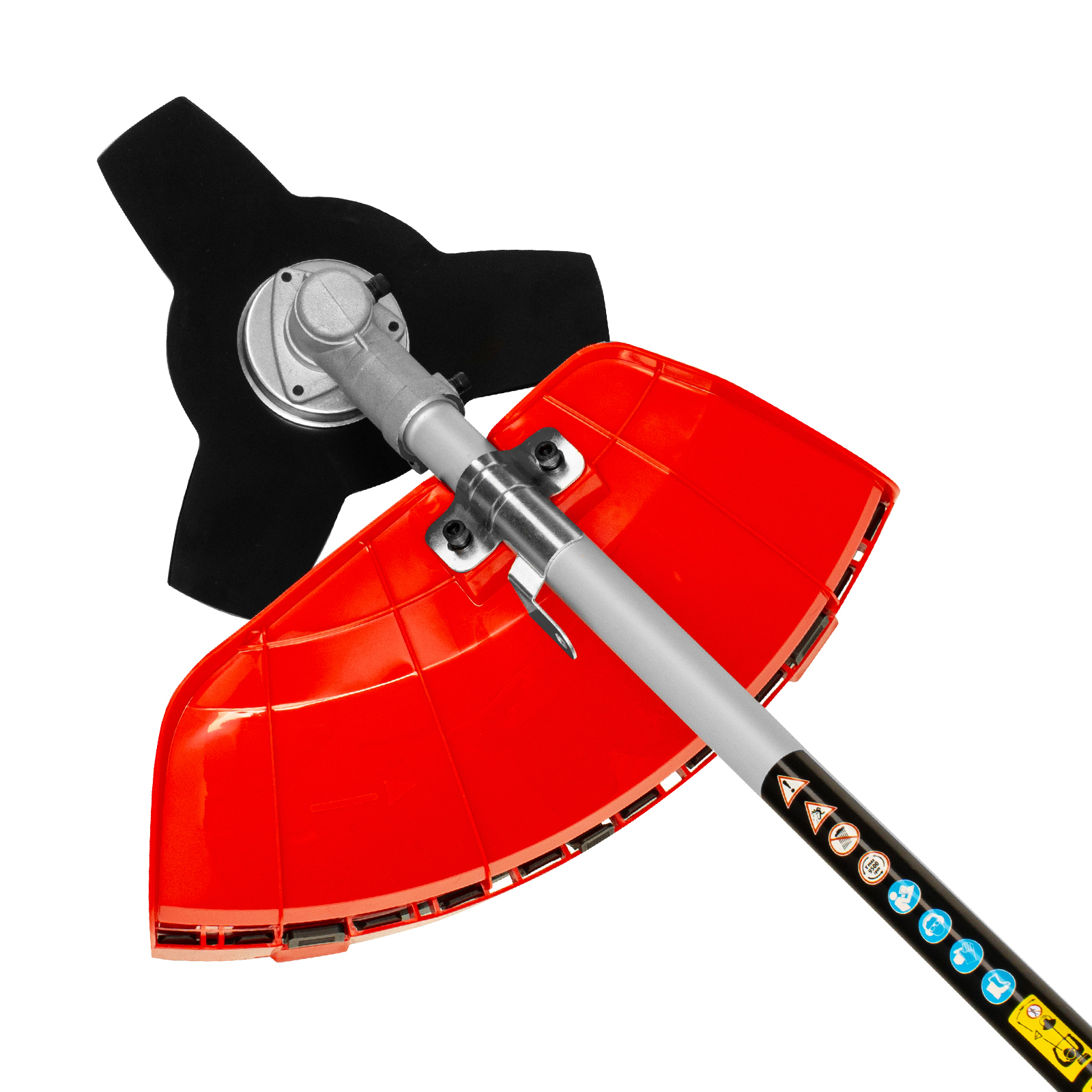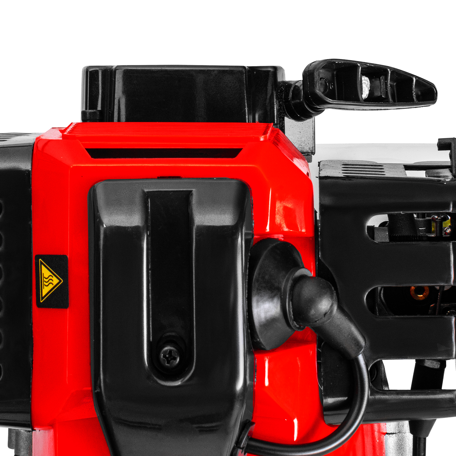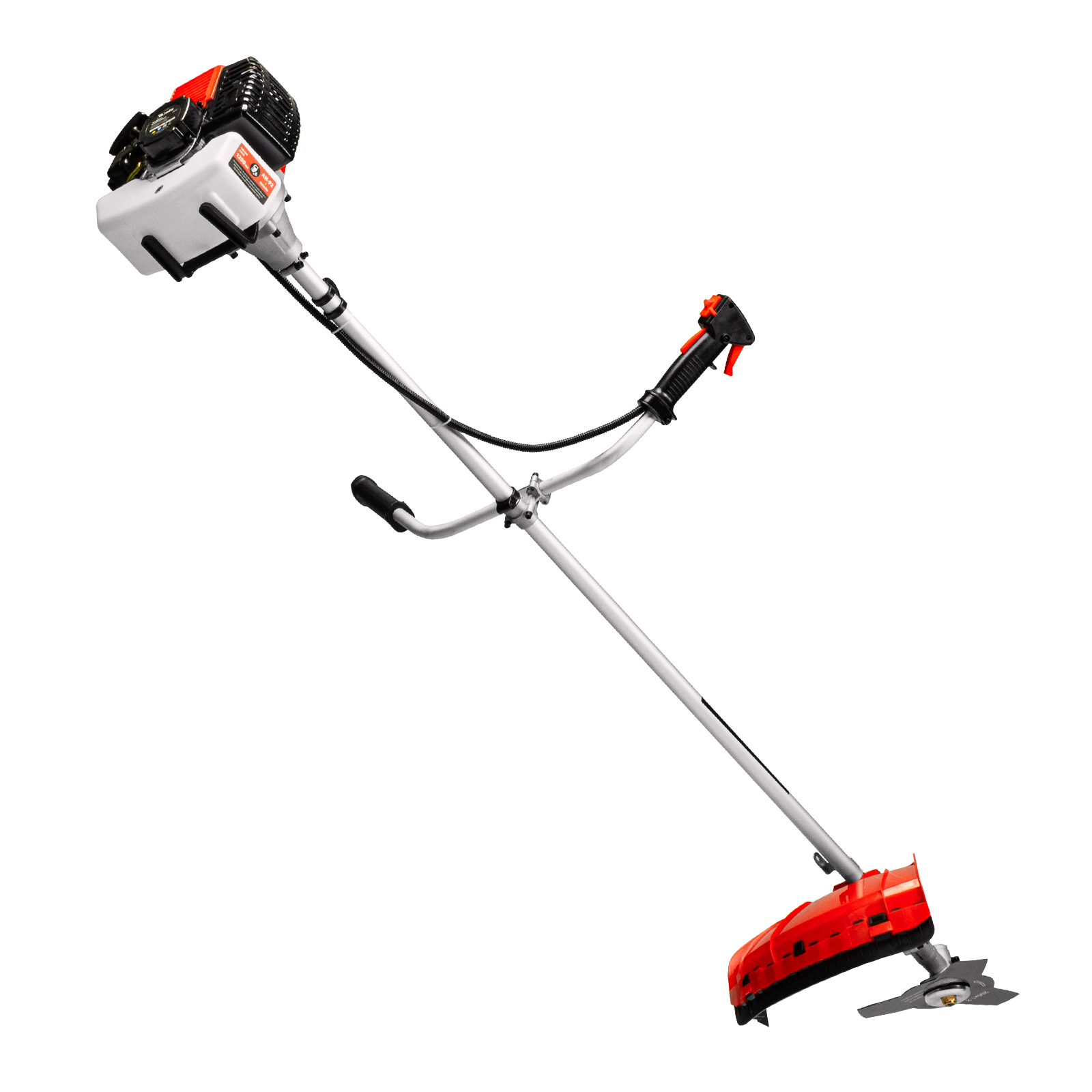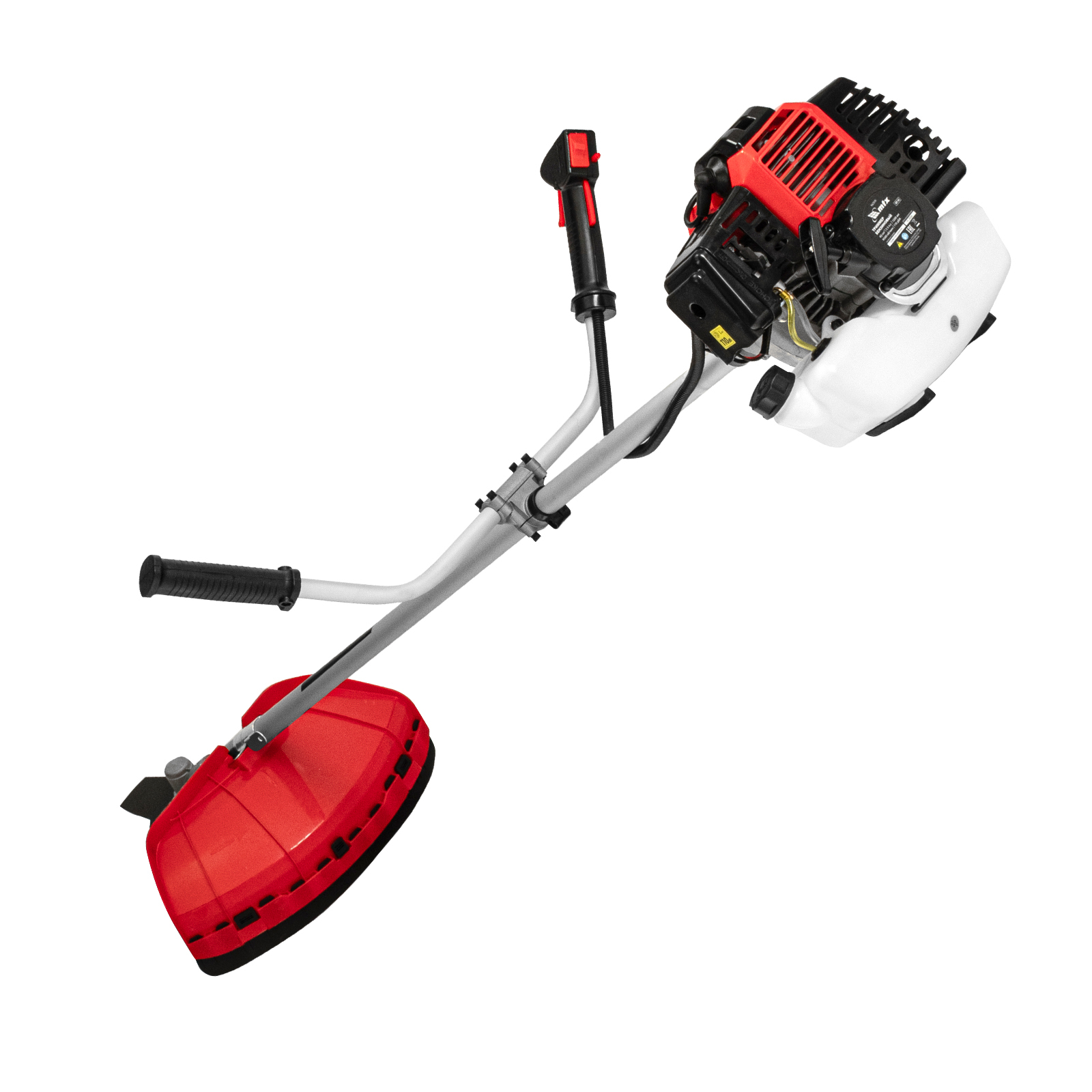 - Безопасность — производитель предусмотрел блокировку курка газа для предотвращения случайного запуска, защитный кожух препятствует вылету травы, веток, камней в сторону пользователя.