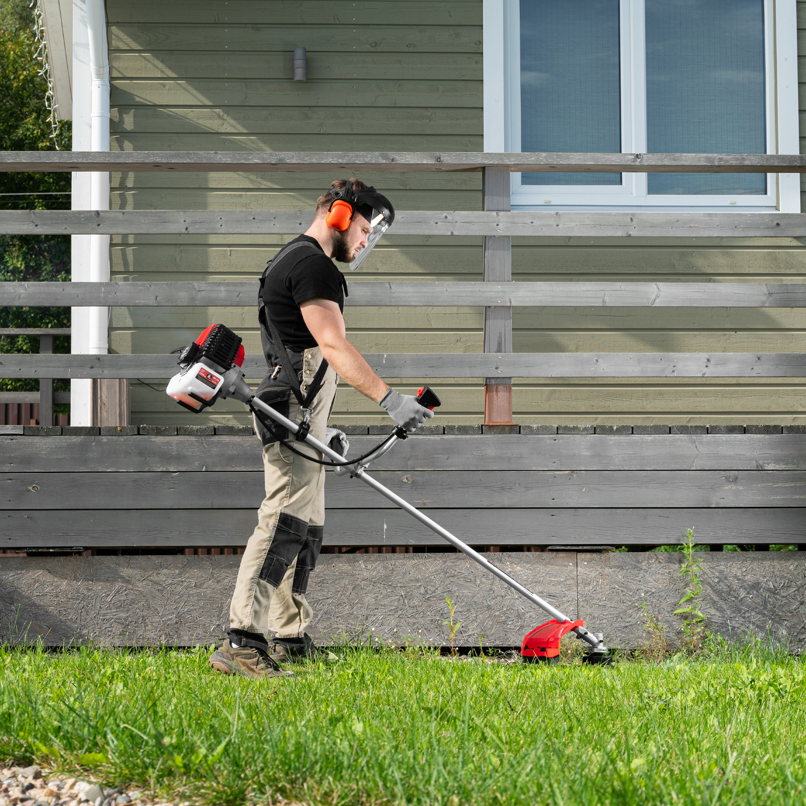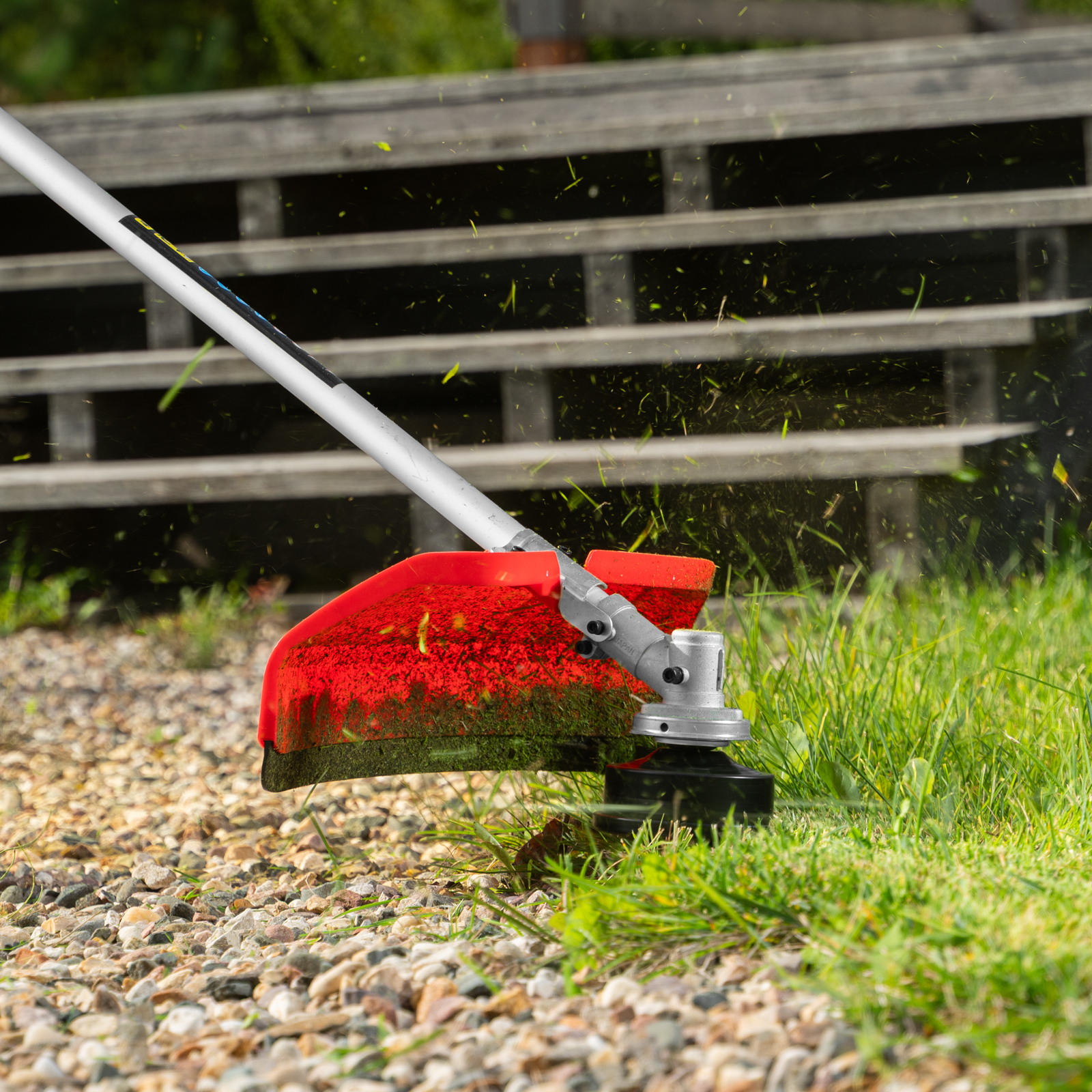 - Комфортная работа — благодаря плечевому ремню и рукояткам велосипедного типа триммер удобно удерживать и направлять.