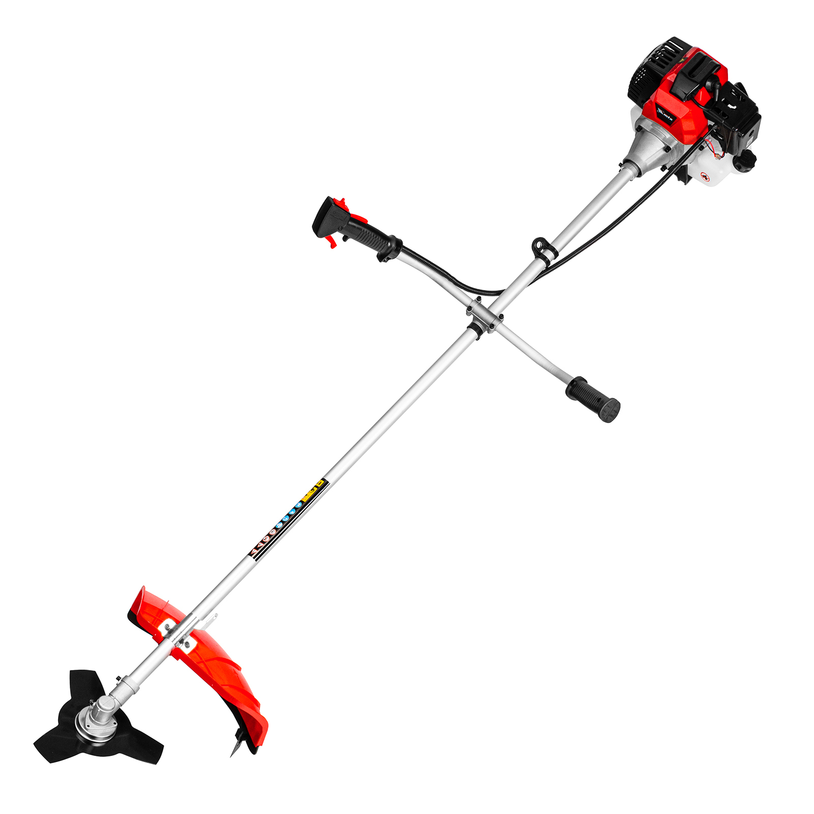Бензиновый триммер MTX MT-43 962335 с неразъемной штангой и двигателем объемом 43 см3 предназначен для стрижки и скашивания травы, формирования границ газонов. Удобен для обработки участков вдоль стен и оград, вокруг деревьев. В качестве режущих элементов используются катушка с леской диаметром 3 мм и трехлопастный нож, благодаря которым триммером можно скашивать даже густую траву и сорняки с толстыми стеблями. Ширина скашивания леской составляет 420 мм, ножом — 255 мм, что позволяет эффективно справляться с работой. Триммер незаменим для ухода за дачным участком.