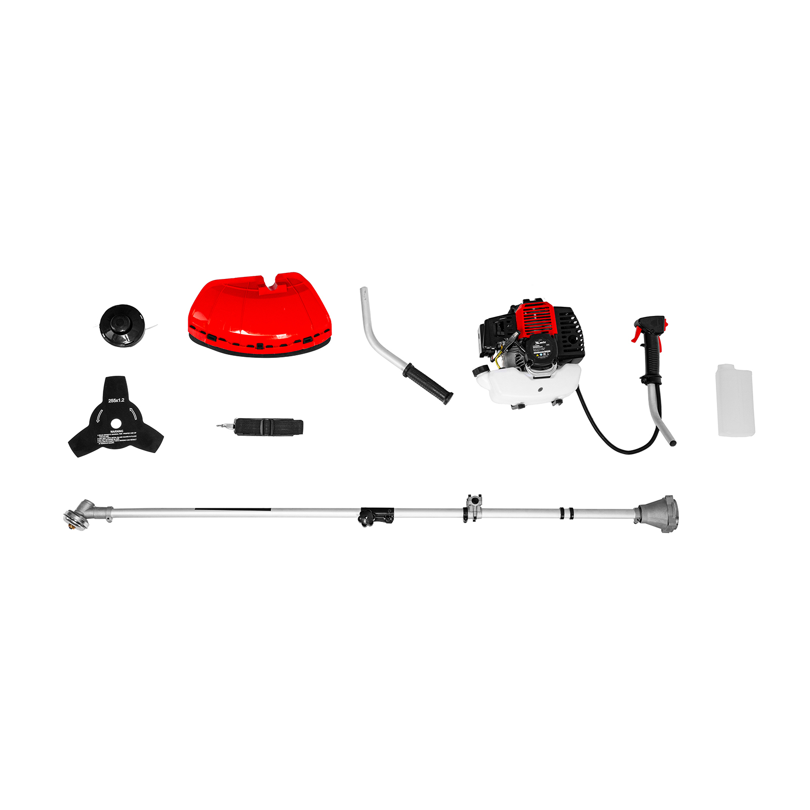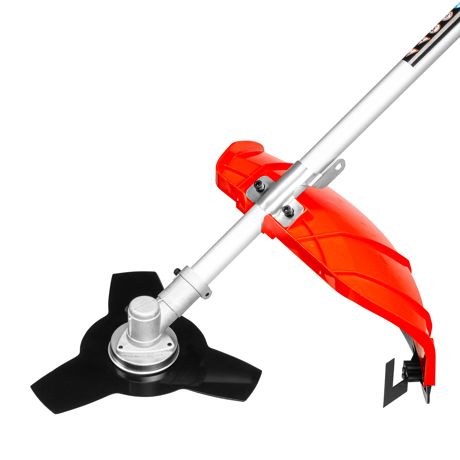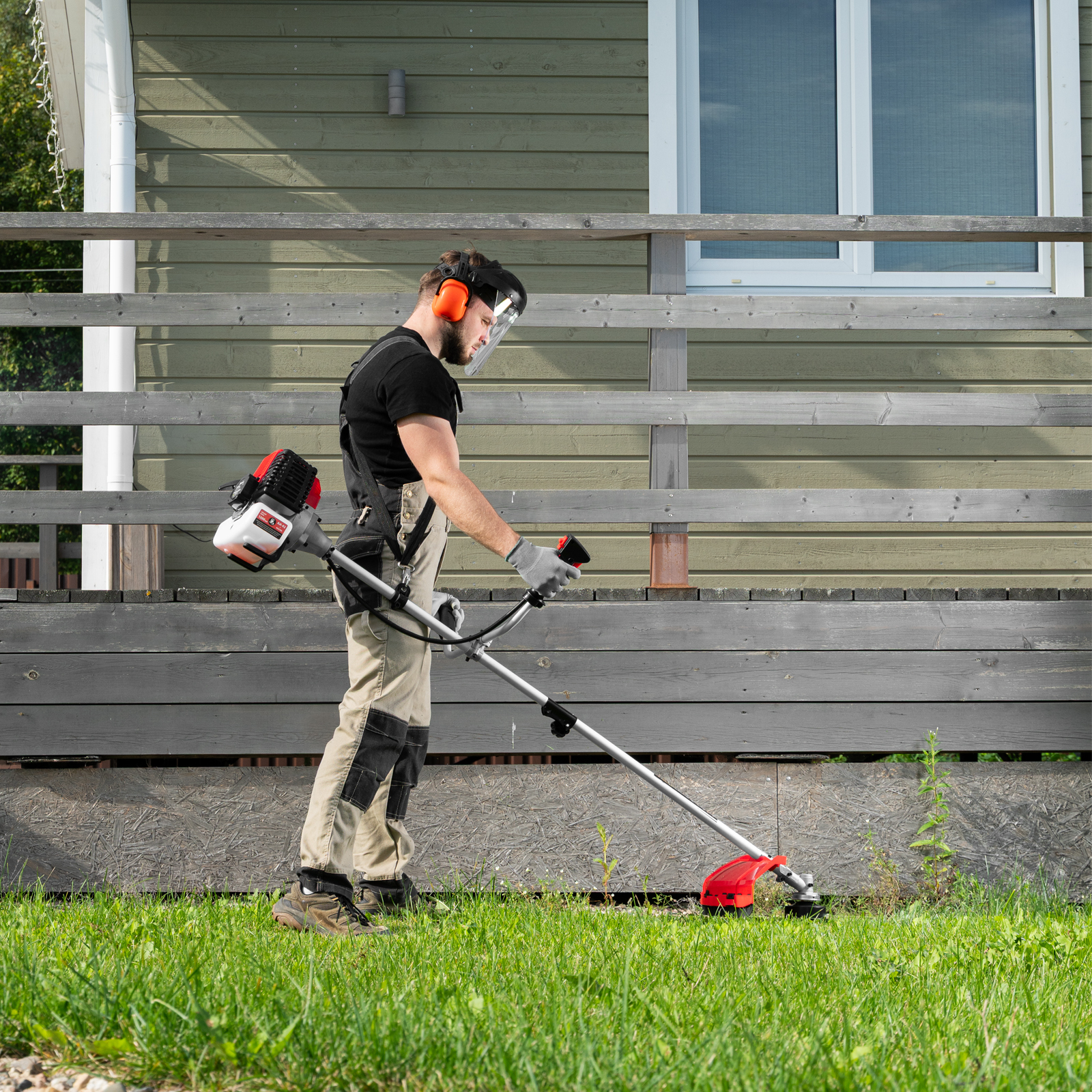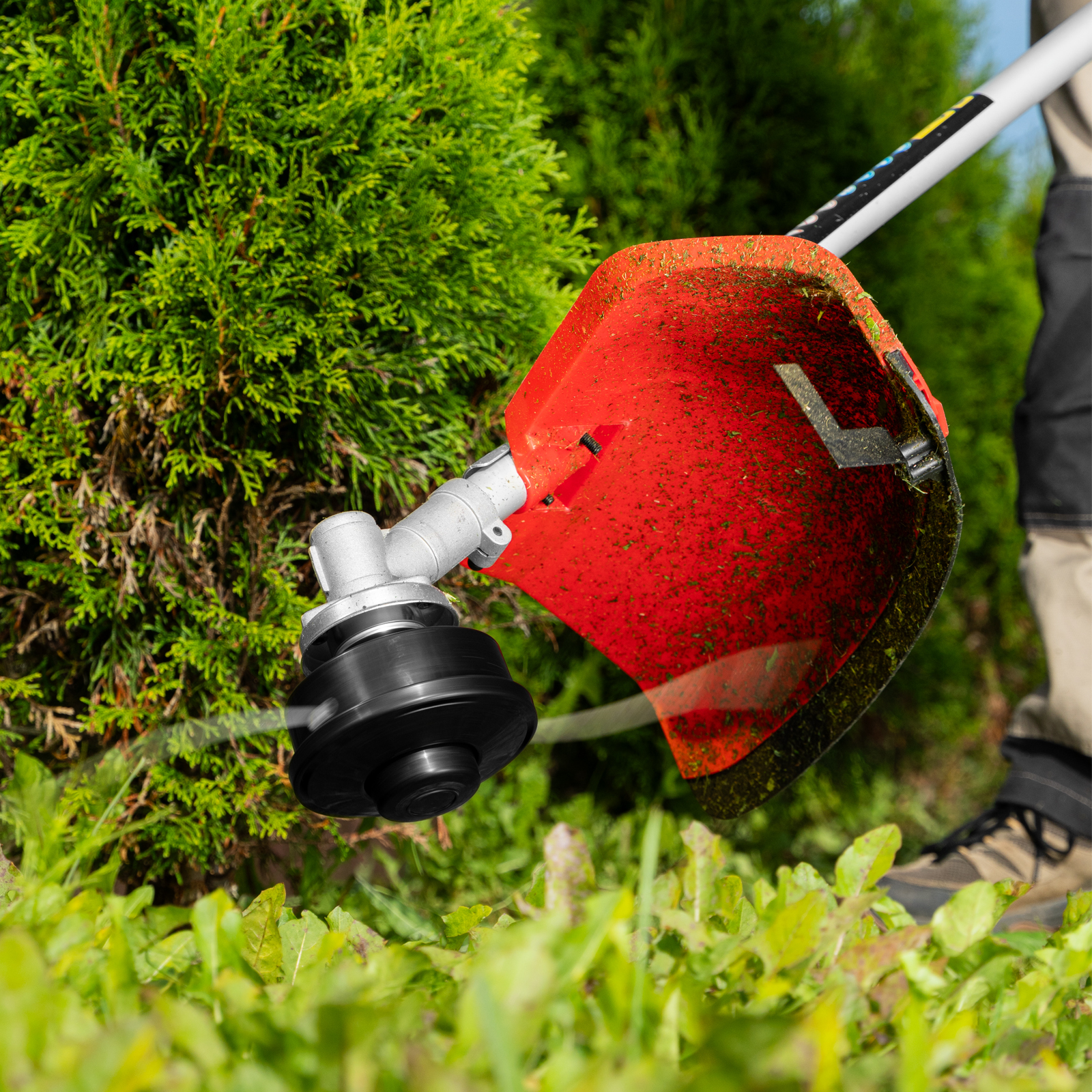 Бензиновый триммер MTX MT-43S 962345 с разъемной штангой и двигателем объемом 43 см3 предназначен для стрижки и скашивания травы, формирования границ газонов. Удобен для обработки участков вдоль стен и оград, вокруг деревьев. В качестве режущих элементов используются катушка с леской диаметром 3 мм и трехлопастный нож, благодаря которым триммером можно скашивать даже густую траву и сорняки с толстыми стеблями. Ширина скашивания леской составляет 420 мм, ножом — 255 мм, что позволяет эффективно справляться с работой. Триммер незаменим для ухода за дачным участком.