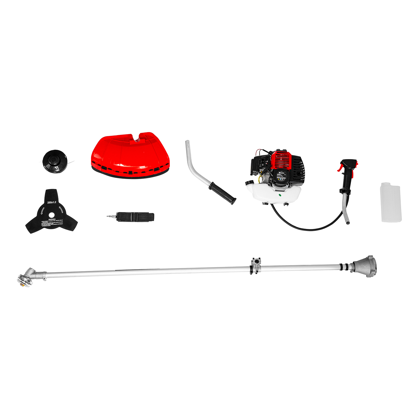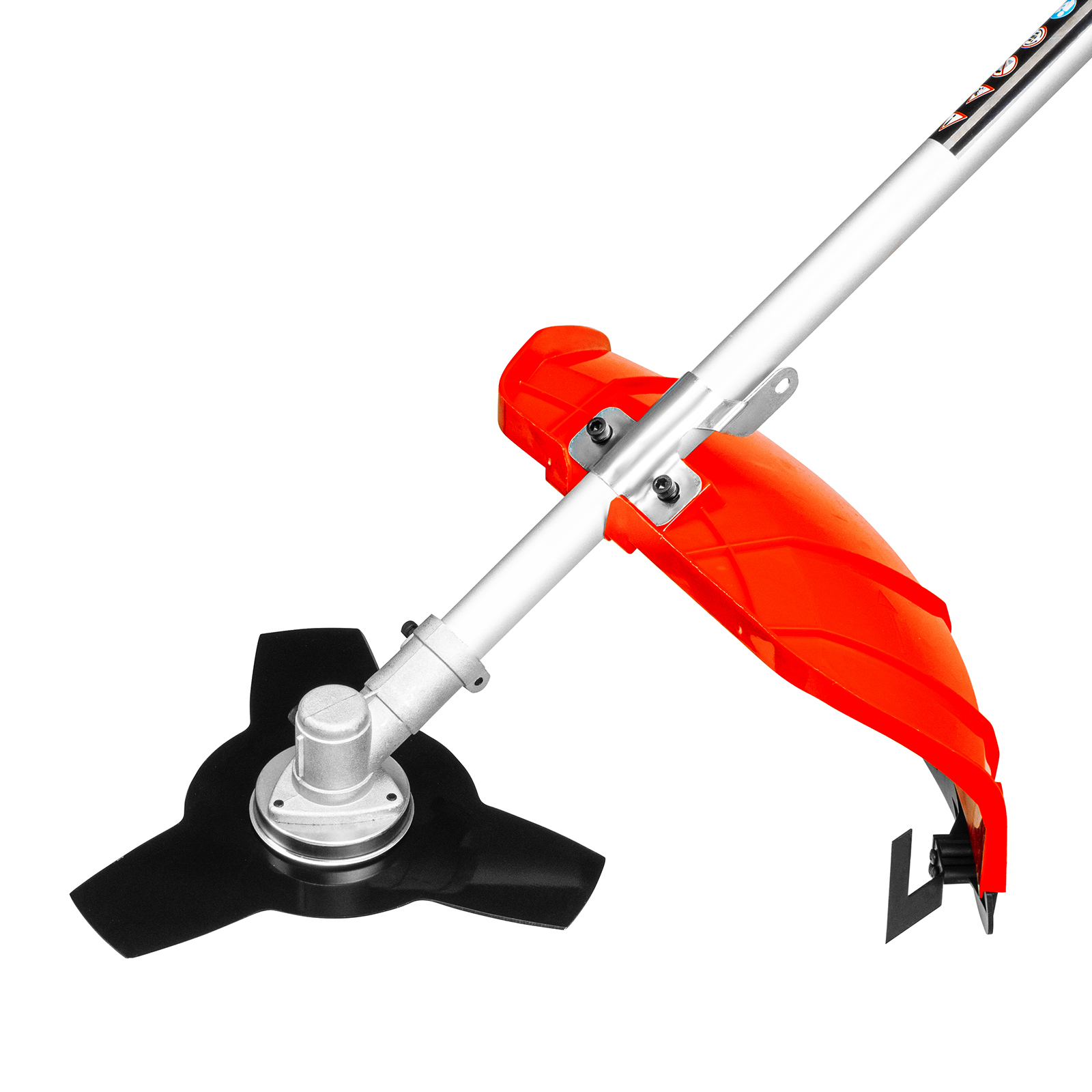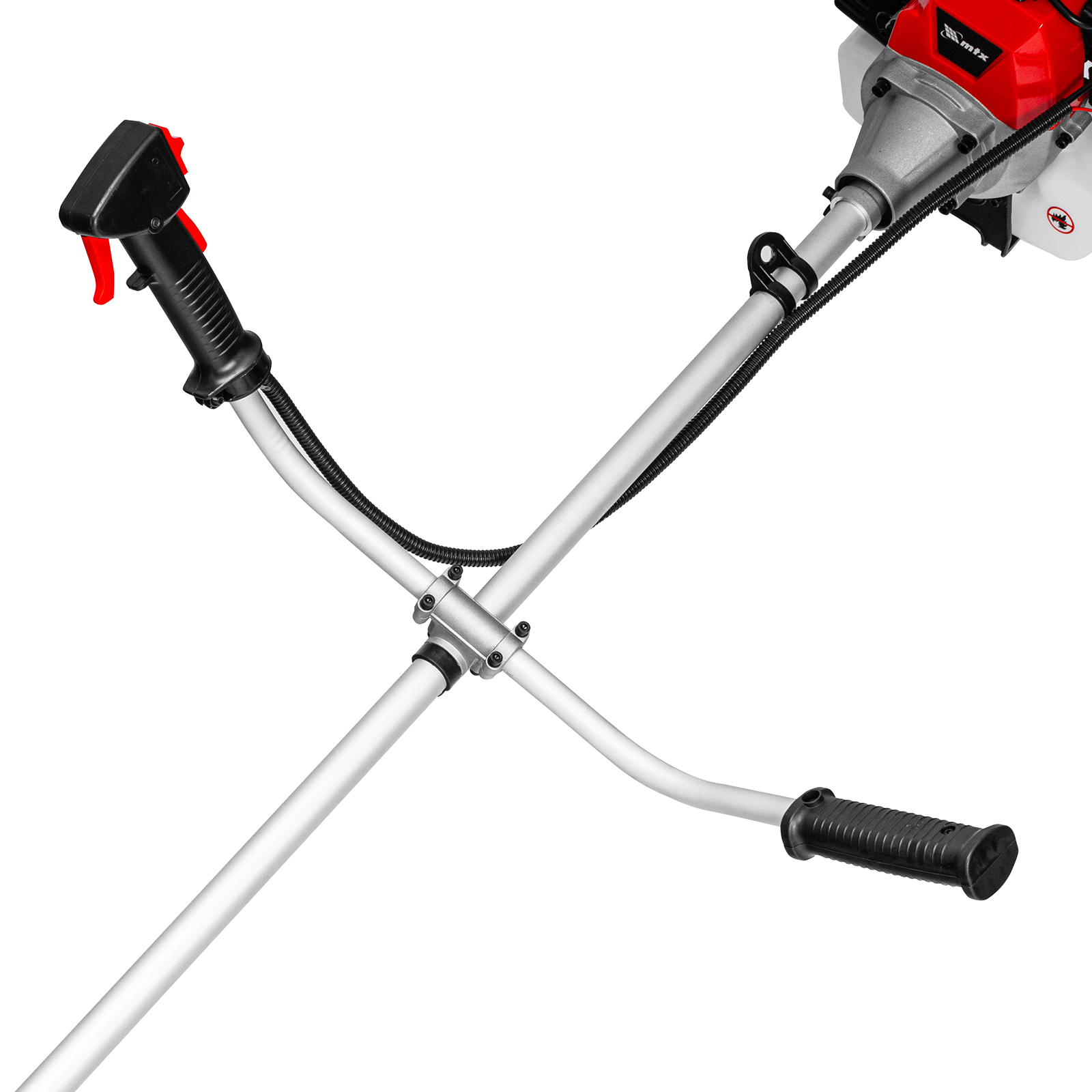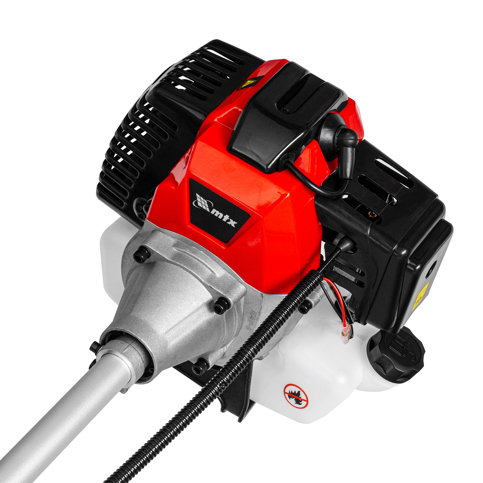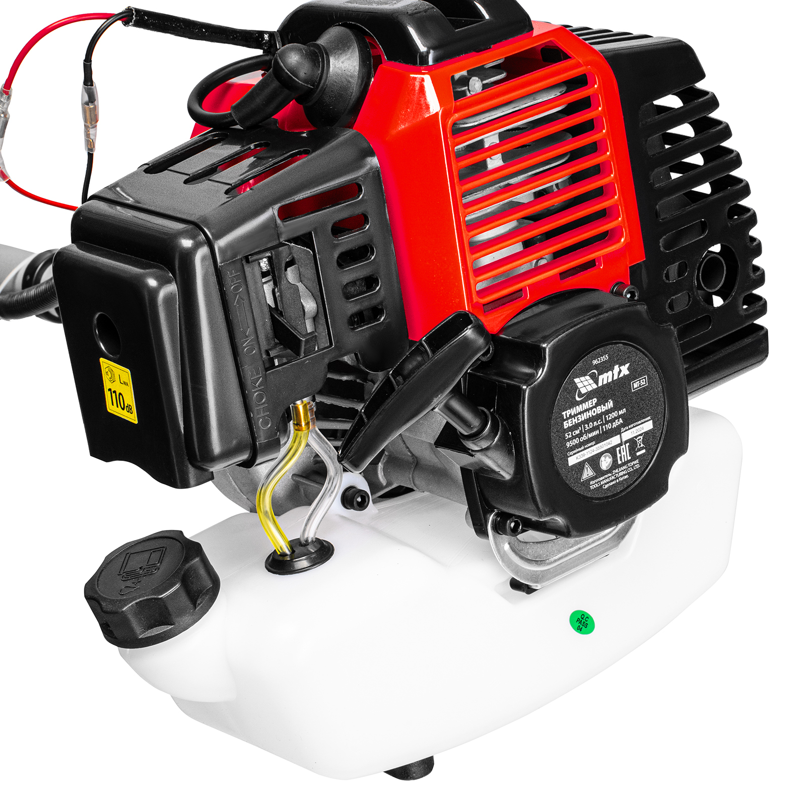 Бензиновый триммер MTX MT-52 962355 с неразъемной штангой и двигателем объемом 52 см3 предназначен для стрижки и скашивания травы, формирования границ газонов. Удобен для обработки участков вдоль стен и оград, вокруг деревьев. В качестве режущих элементов используются катушка с леской диаметром 3 мм и трехлопастный нож, благодаря которым триммером можно скашивать даже густую траву и сорняки с толстыми стеблями. Ширина скашивания леской составляет 420 мм, ножом — 255 мм, что позволяет эффективно справляться с работой. Триммер незаменим для ухода за дачным участком.
