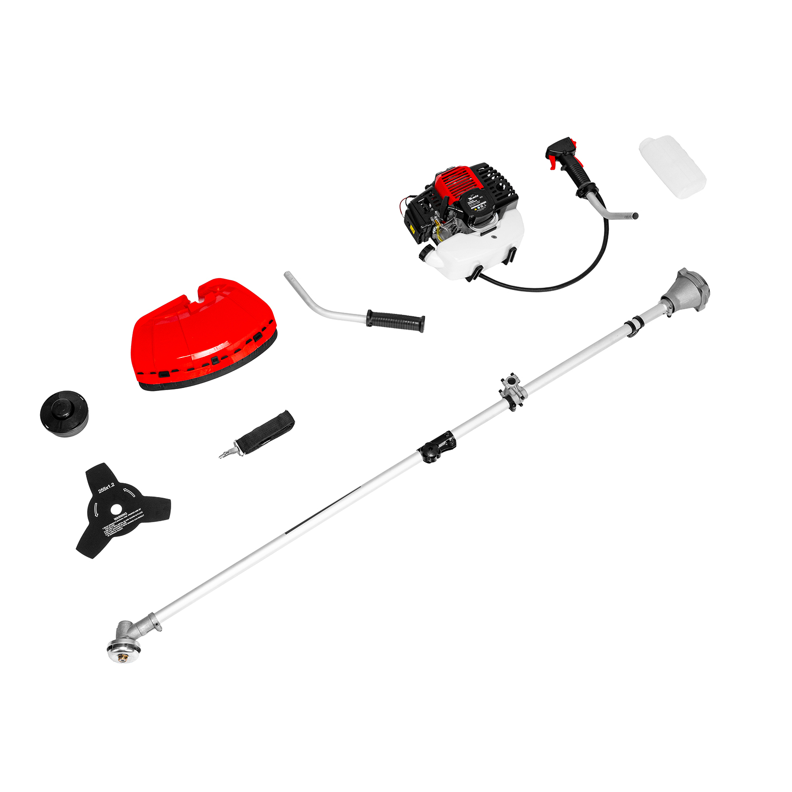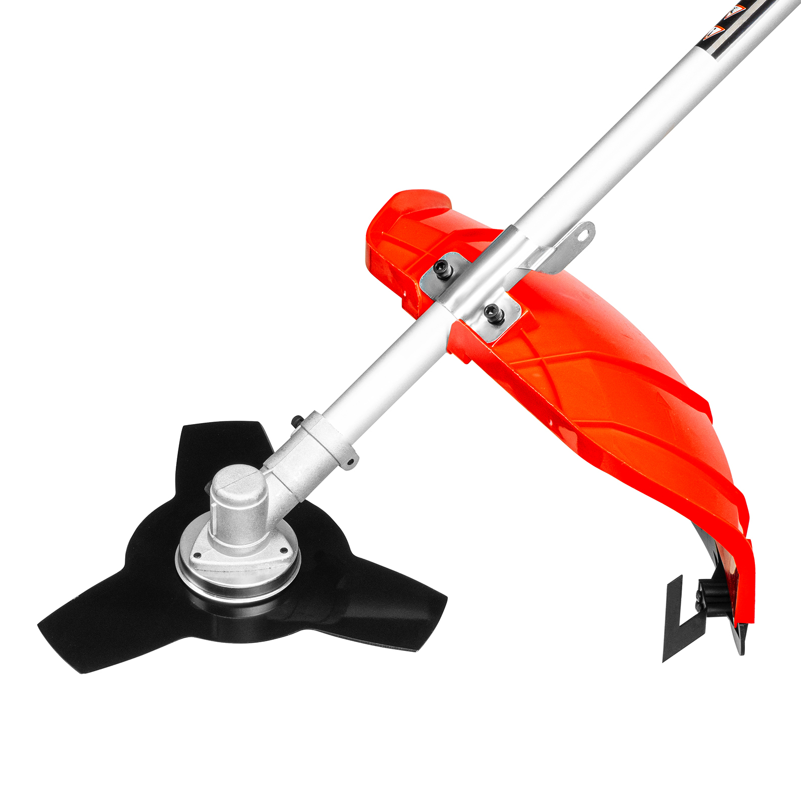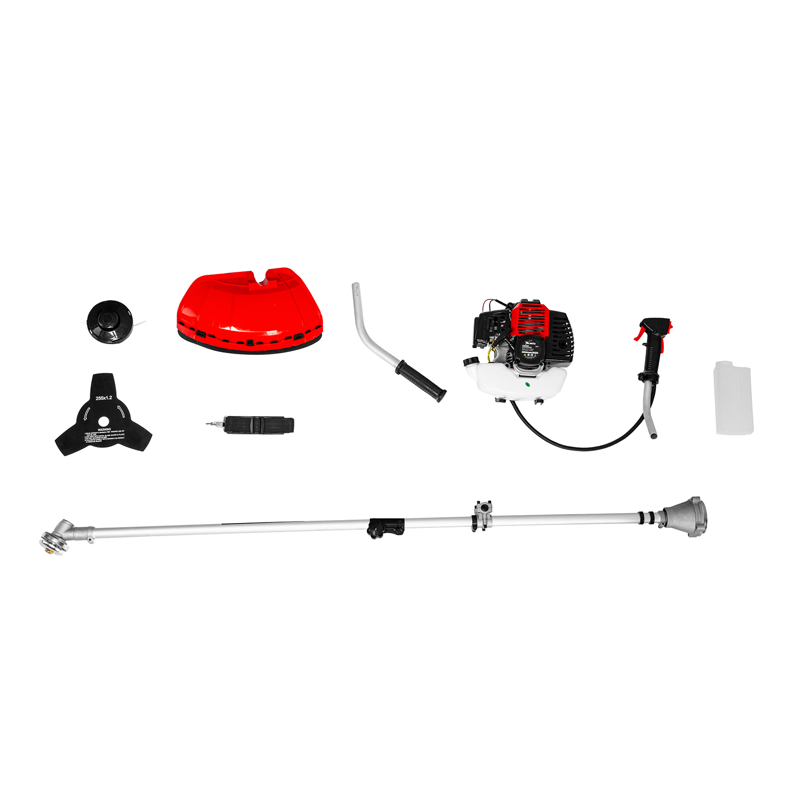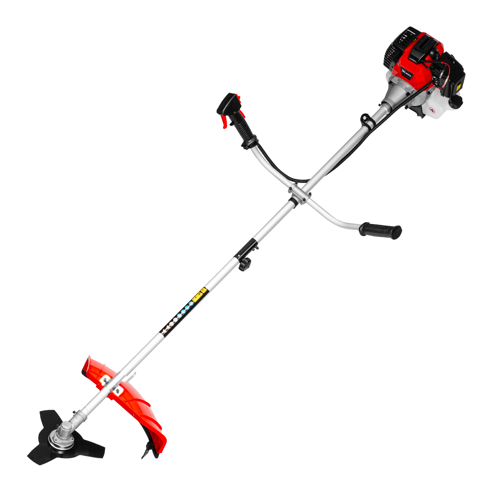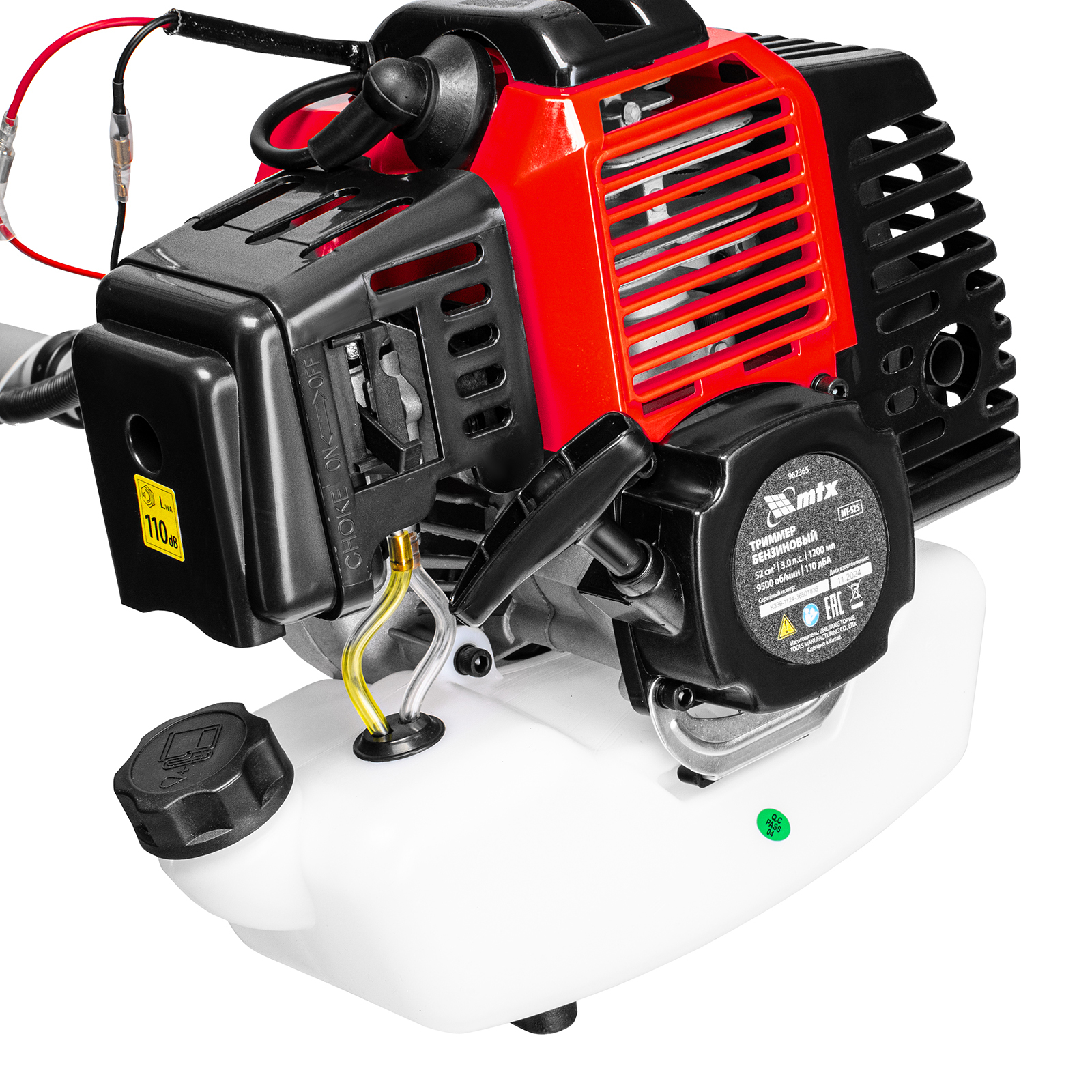 Бензиновый триммер MTX MT-52S 962365 с разъемной штангой и двигателем объемом 52 см3 предназначен для стрижки и скашивания травы, формирования границ газонов. Удобен для обработки участков вдоль стен и оград, вокруг деревьев. В качестве режущих элементов используются катушка с леской диаметром 3 мм и трехлопастный нож, благодаря которым триммером можно скашивать даже густую траву и сорняки с толстыми стеблями. Ширина скашивания леской составляет 420 мм, ножом — 255 мм, что позволяет эффективно справляться с работой. Триммер незаменим для ухода за дачным участком.