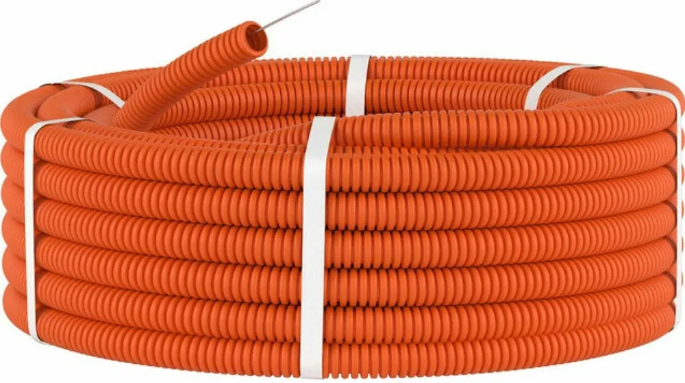 Гофра ПНД для кабеля труба гофрированная гибкая с протяжкой оранжевая 25м.