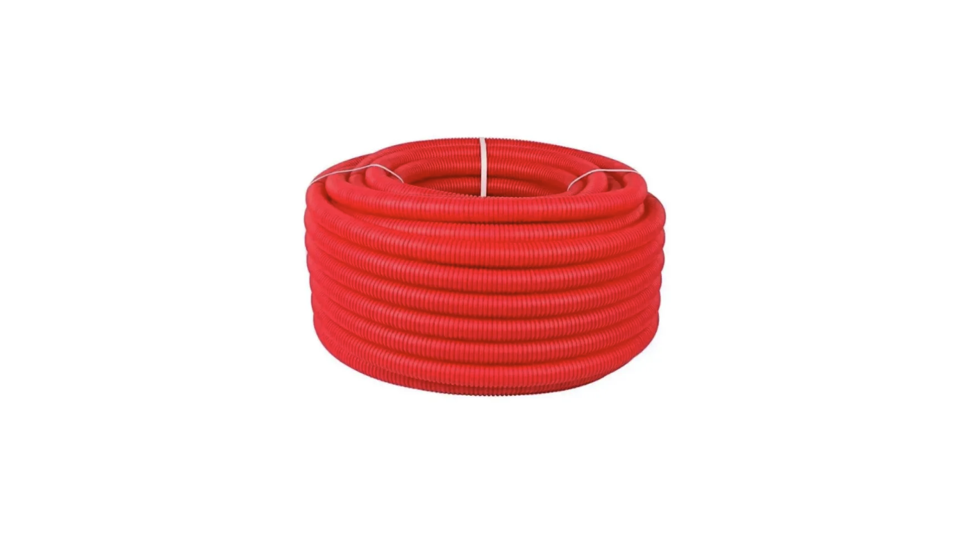 Труба гофрированная водопроводная ПНД D20 мм 50 метров/ Цвет : Красный