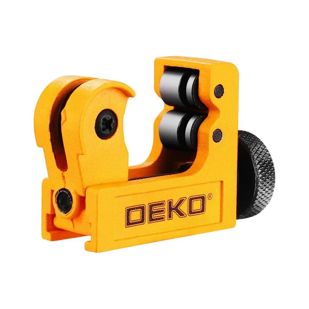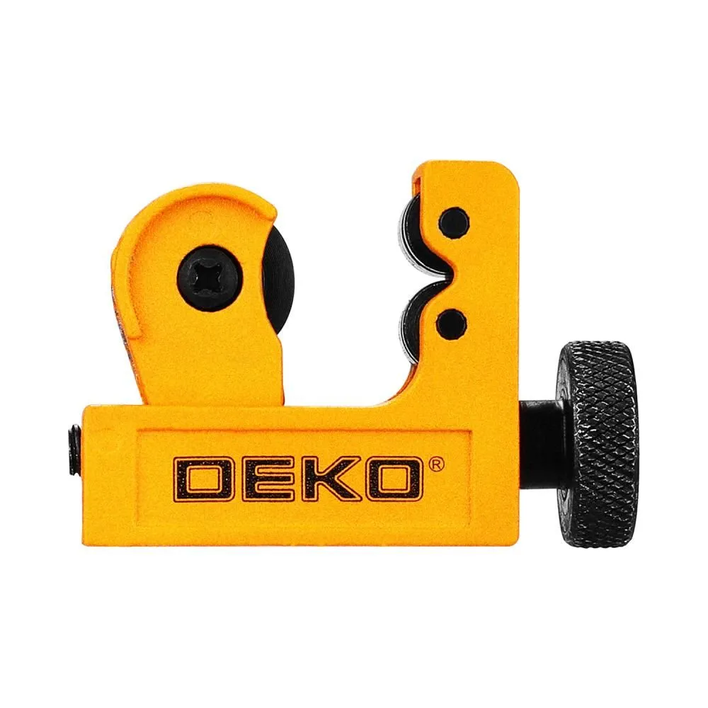Роликовый труборез DEKO PC22 — профессиональный инструмент для точного реза металлических труб диаметром до 22 мм. Он предназначен для работы с медными, алюминиевыми и стальными трубками в системах водоснабжения, отопления и других инженерных сетях. Конструкция инструмента обеспечивает ровный срез без деформации стенок и образования заусенцев. Режущий механизм гарантирует чистоту кромки, что критично для последующего монтажа и соединения элементов. Регулируемое зажимное кольцо надёжно фиксирует заготовку, обеспечивая плавный ход ролика. Корпус трубореза выполнен из прочного металла, устойчивого к коррозии и механическим нагрузкам. Компактные размеры и малый вес позволяют использовать данный резак в условиях ограниченного пространства и на труднодоступных участках. Инструмент применяется для монтажных, сантехнических и ремонтных работ как в профессиональной сфере, так и дома. DEKO PC22 оптимален для специалистов и домашних мастеров, выполняющих задачи любой сложности.