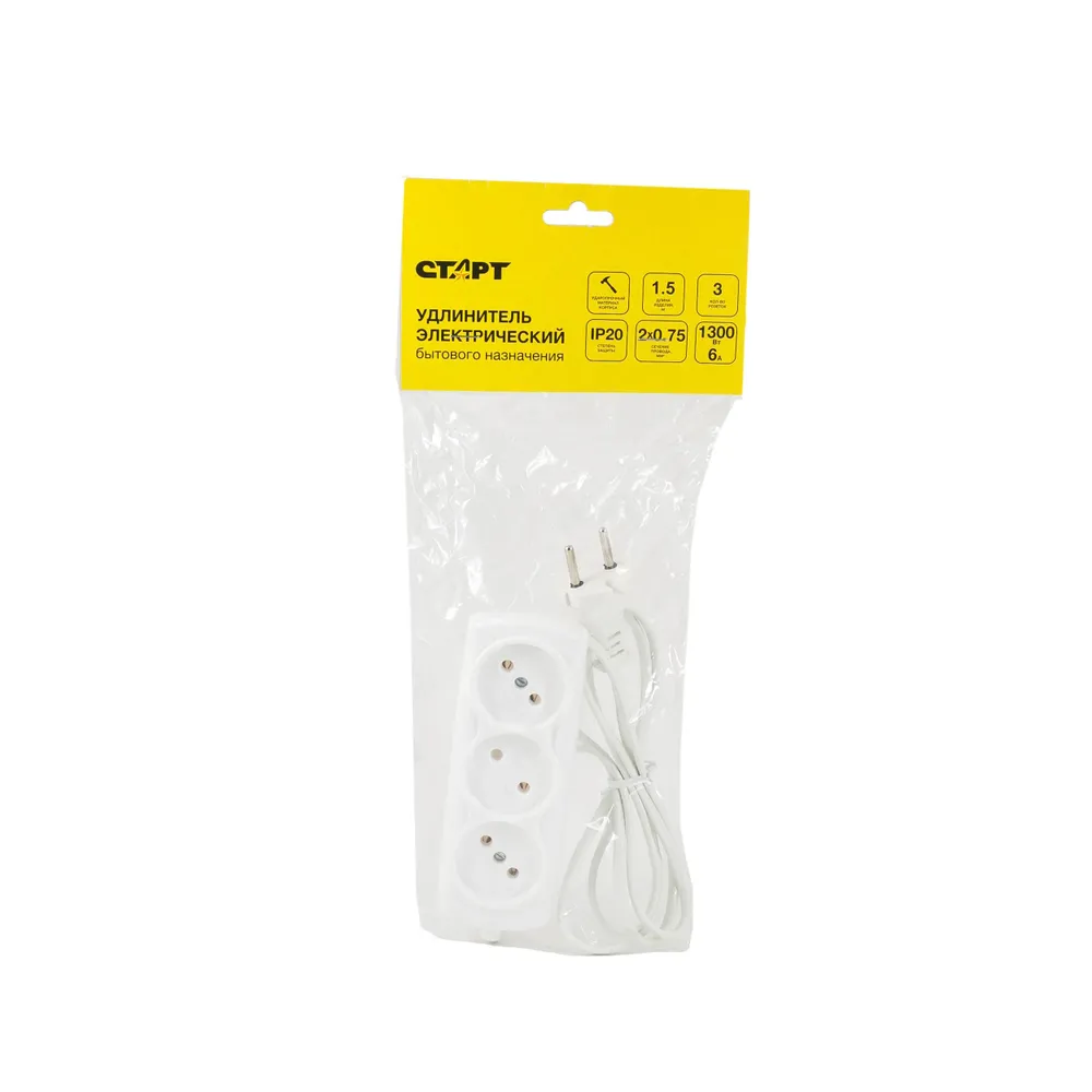 Удлинитель сетевой бытовой 1.5м СТАРТ 3 розетки, 6А, 1300Вт