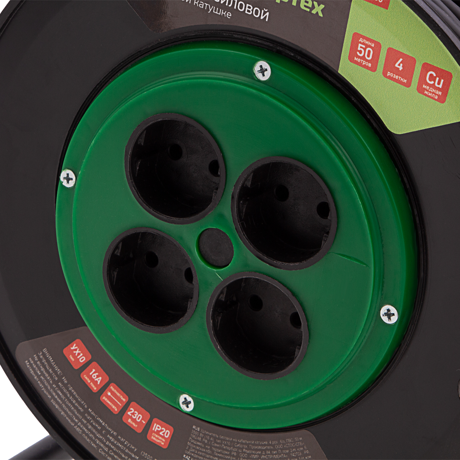Силовой удлинитель Сибртех 95865 типа УХ10, 16 А, тип кабеля ПВС, на кабельной катушке, с 4 розетками, используется для подключения электроприборов на расстоянии до 50 м от стационарного источника электропитания. При этом суммарная мощность подключенных потребителей энергии не должна превышать 3500 Вт. Металлическая стойка сетевого удлинителя полая внутри, что облегчает конструкцию. Удлинитель пригодится во время строительных работ на дачном участке.