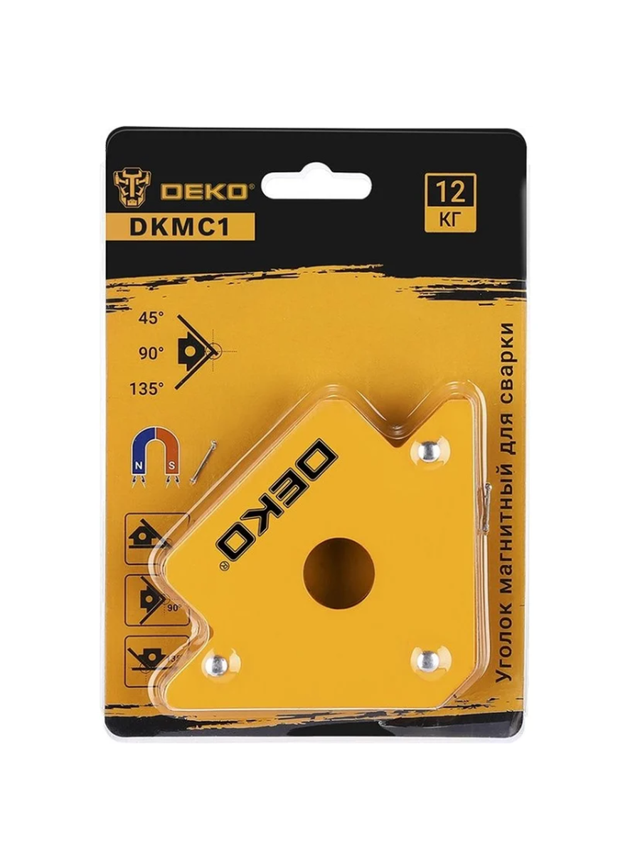 Уголок магнитный для сварки DKMC1 (45/90/135 градусов; 12 кг) DEKO 065-0640 предназначен для фиксации металлических деталей в процессе сварки и пайки под углами 45, 90 и 135 градусов. Удерживает вес до 12кг. Быстро и надежно фиксирует детали благодаря мощному магниту. Заменяет неудобные зажимы и струбцины.
