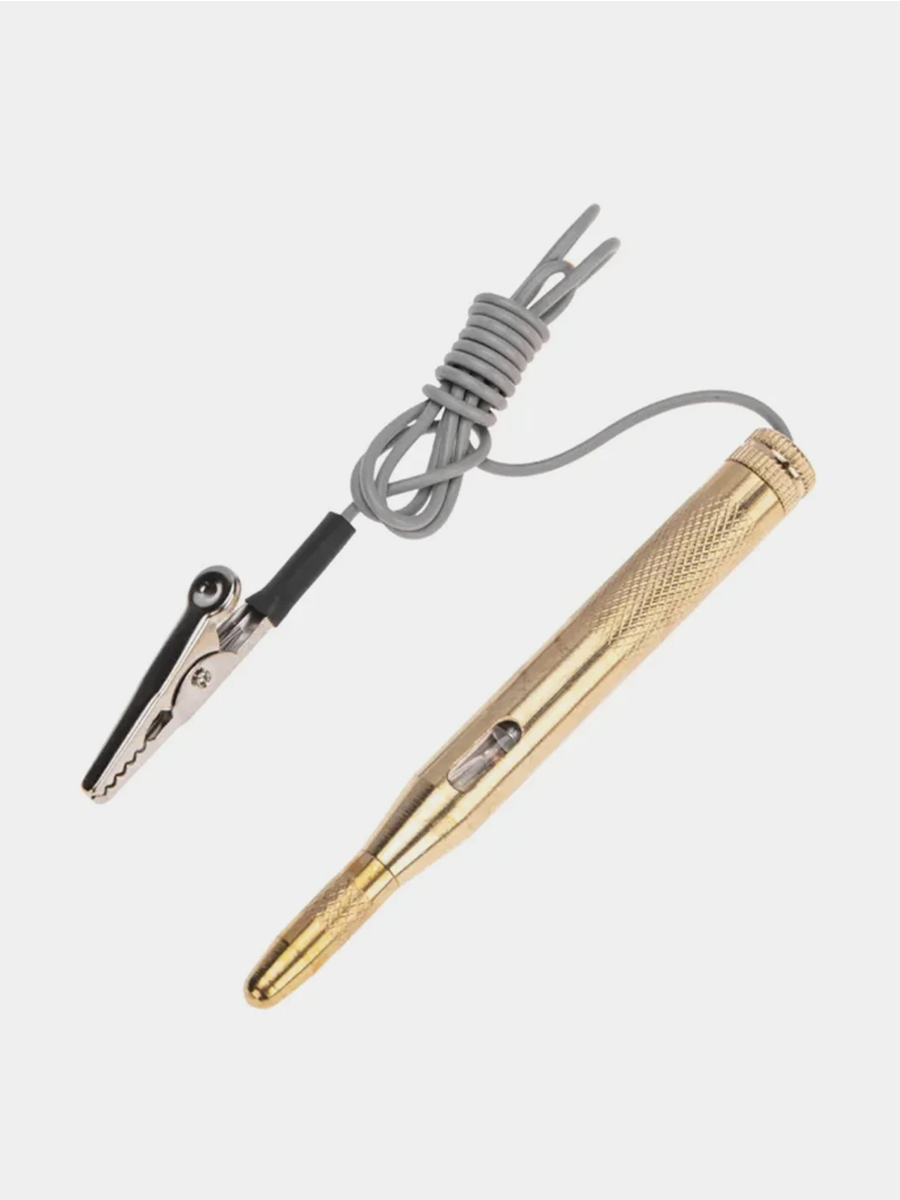 Автотестер универсальный металлический REXANT предназначен для быстрой и эффективной диагностики электрооборудования автомобилей от 6 до 24 В. Позволяет выявить замыкание и обрыв проводки или проверить предохранители, лампочки и диоды. Тестер имеет накручивающийся защитный колпачок. Корпус выполнен из металла и снабжен проводом с зажимом типа «крокодил» и световым индикатором.