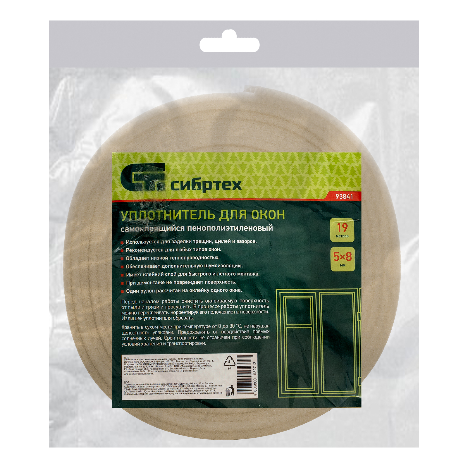 Самоклеящийся уплотнитель для окон Сибртех 93841 размером 5 мм х 8 мм х 19 м обеспечивает тепло- и шумоизоляцию, предотвращает образование сквозняков, попадание пыли. Может использоваться в жилых, производственных и иных помещениях.