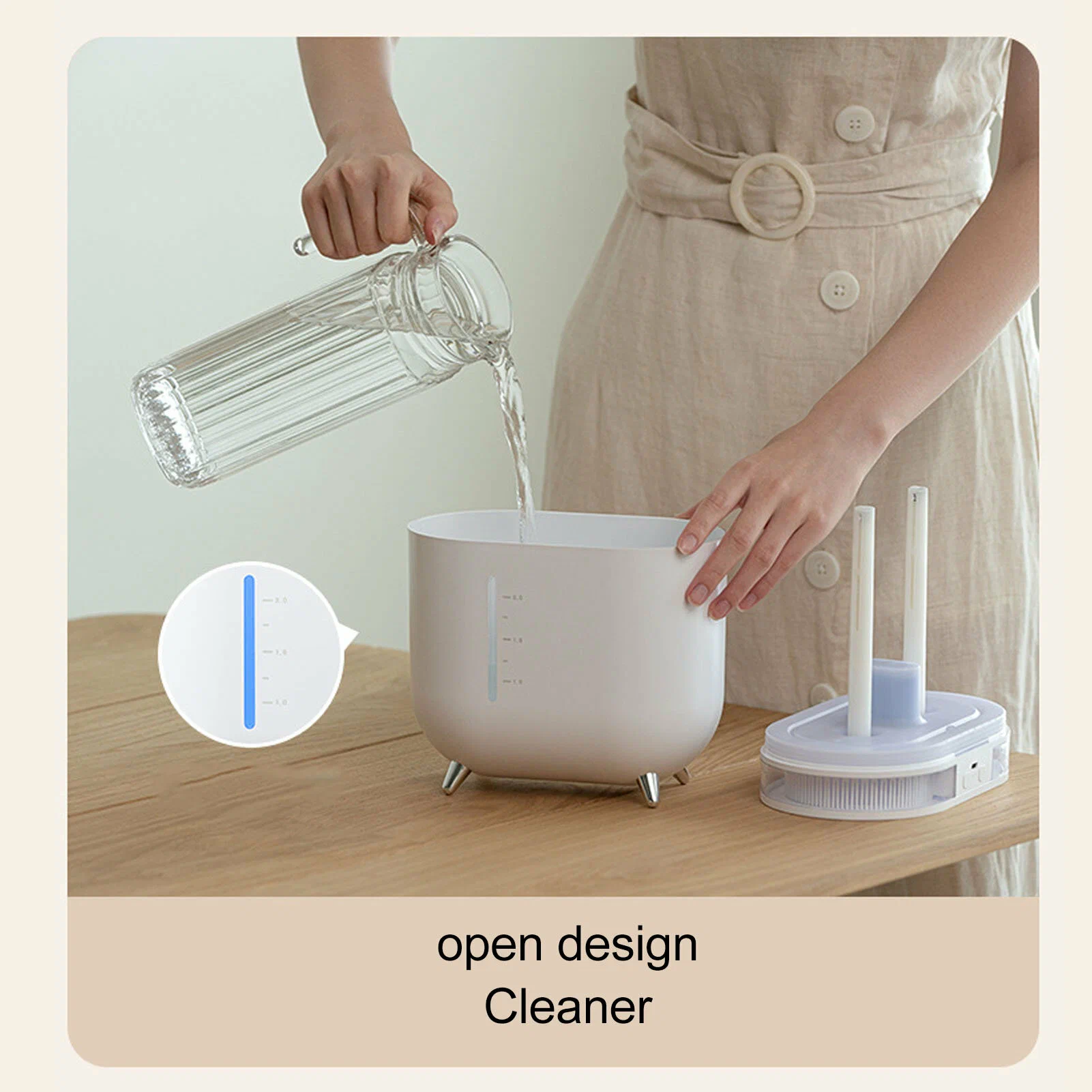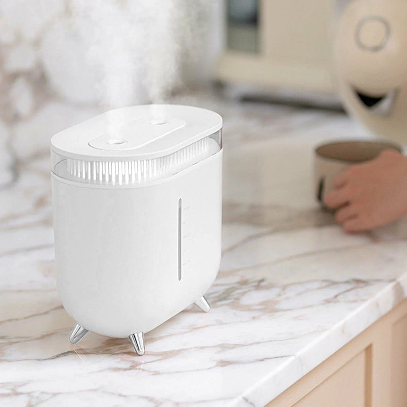 Этот увлажнитель имеет настольный форм-фактор, что позволяет ему занимать минимум места и легко помещаться на столе или полке. Он эффективно увлажняет сухой воздух в помещении, создавая более комфортные условия для работы и отдыха.
