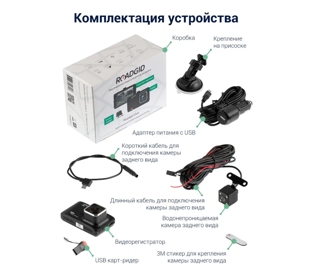 Roadgid Duo — компактный видеорегистратор с двумя камерами для полной записи дорожной обстановки.