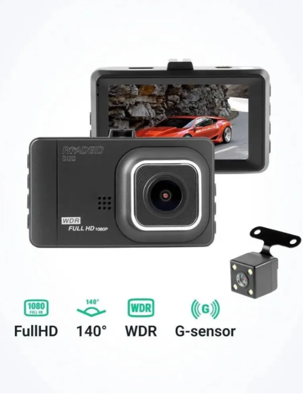 Устройство оснащено экраном 3 дюйма, циклической записью, датчиком удара (G-сенсором)