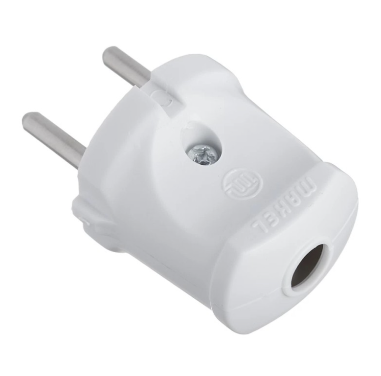 Вилка прямая разборная Makel 10001, 6А, 230В, б/з, белая