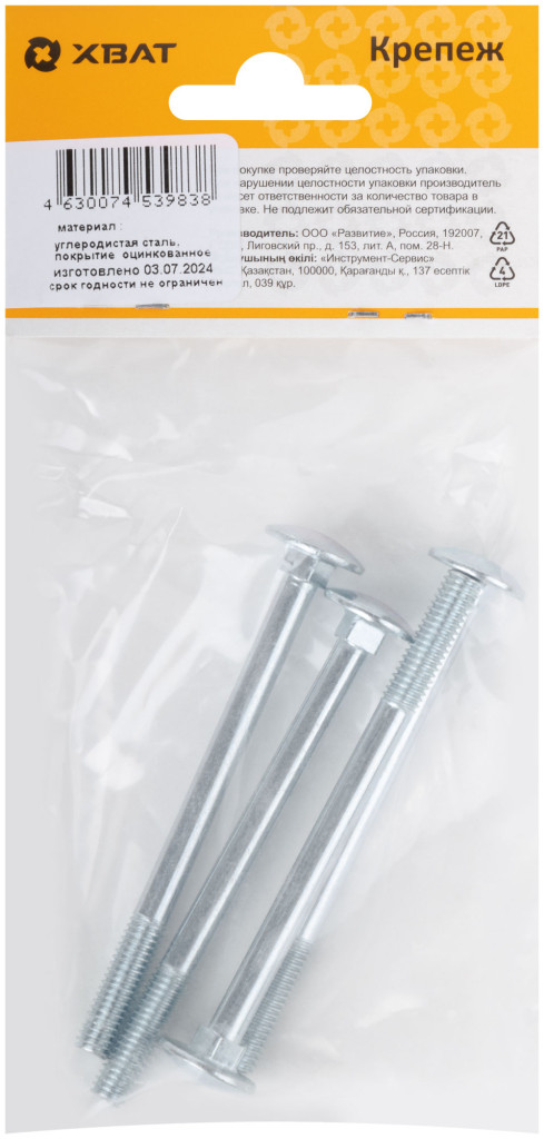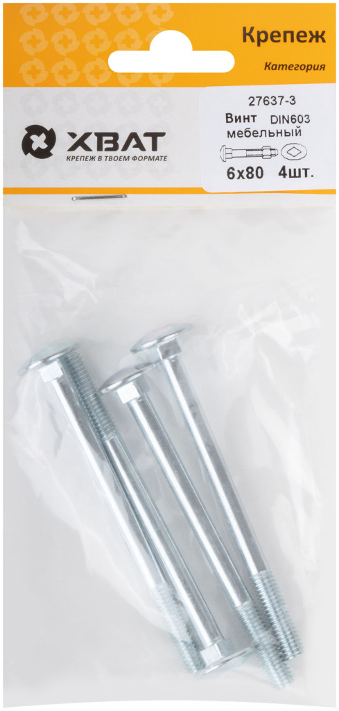 Винт мебельный din 603 6 х 80 (фасовка 4 шт.)