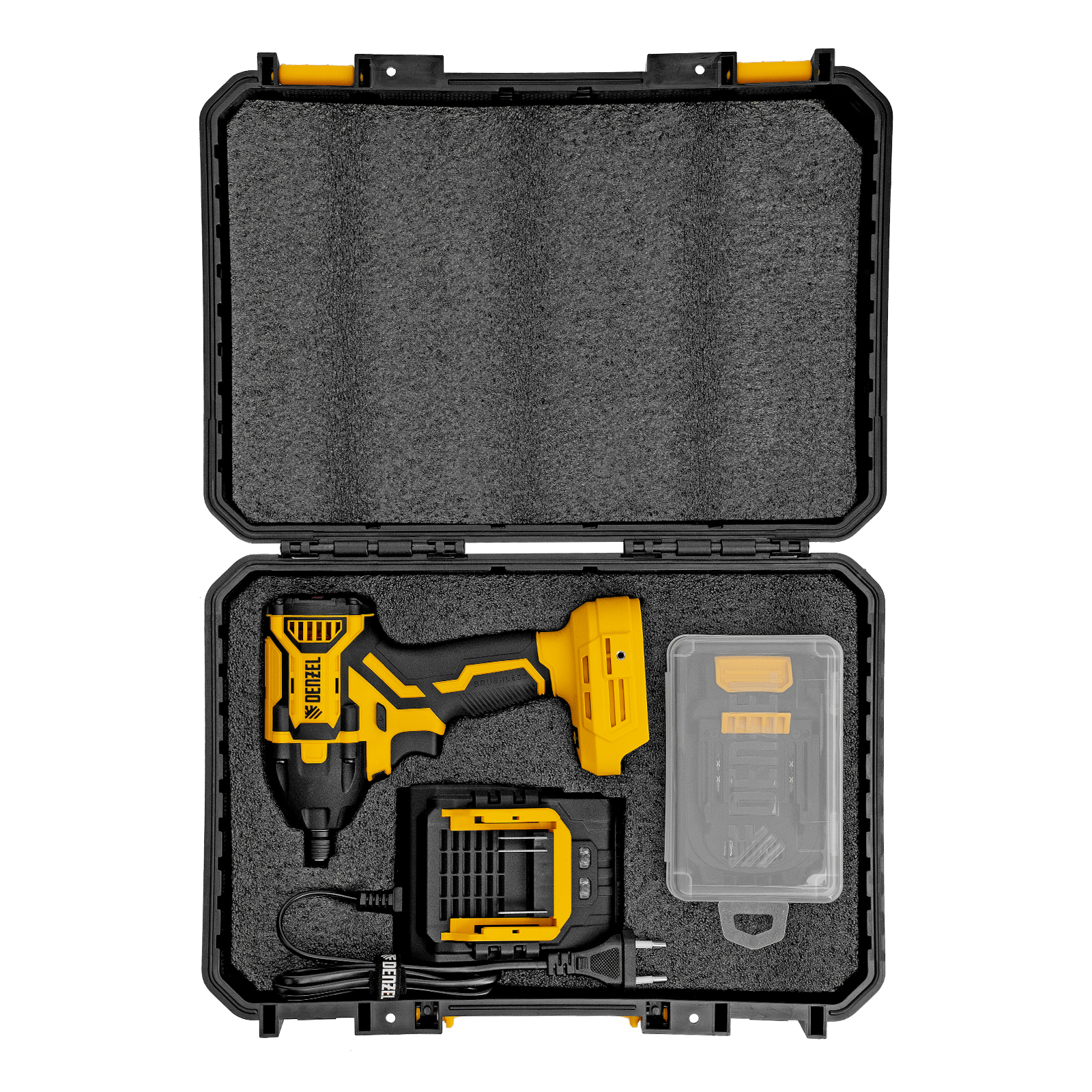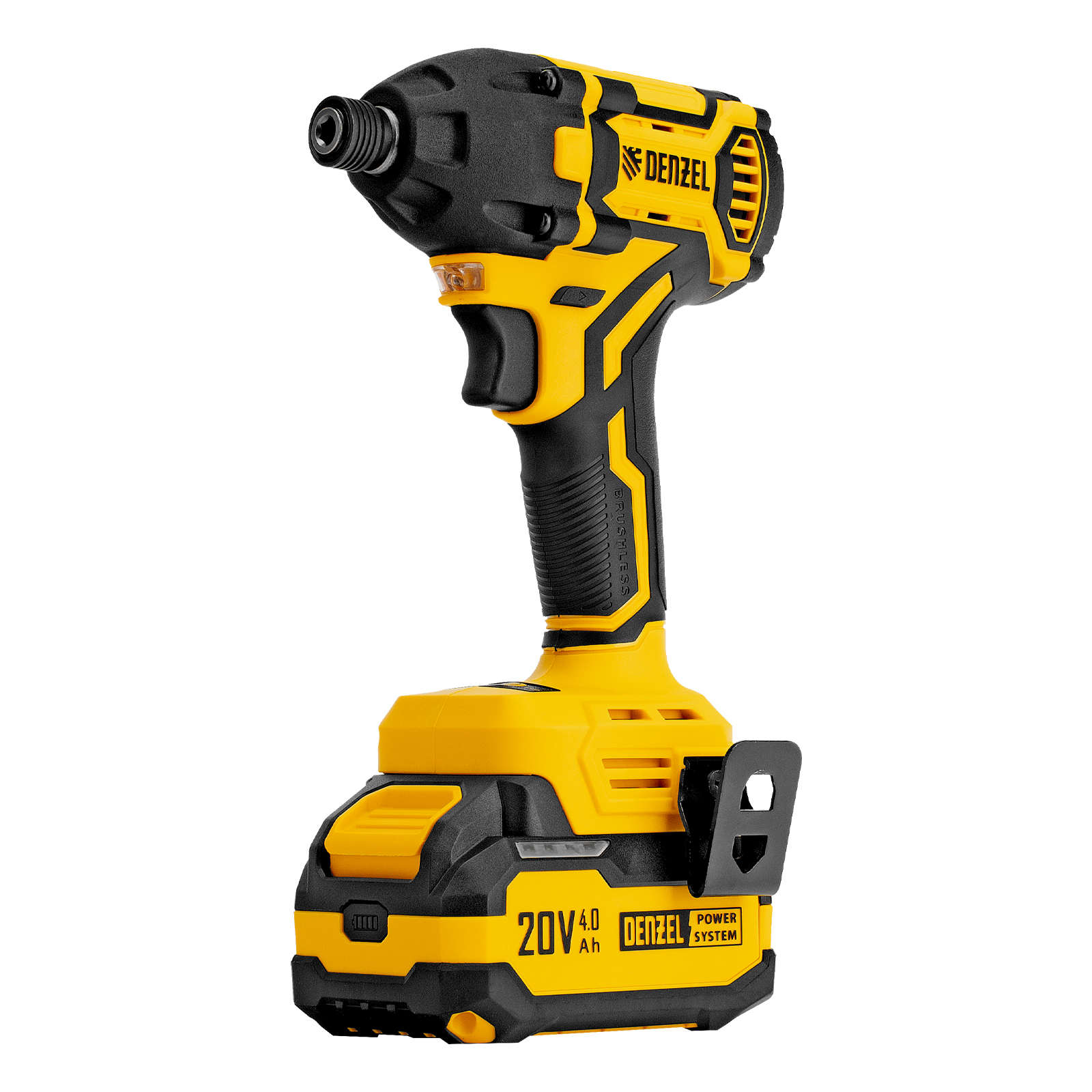 - Универсальность — аккумулятор Li-Ion емкостью 4 А·ч совместим со всеми инструментами единой платформы Denzel Power System 20V.