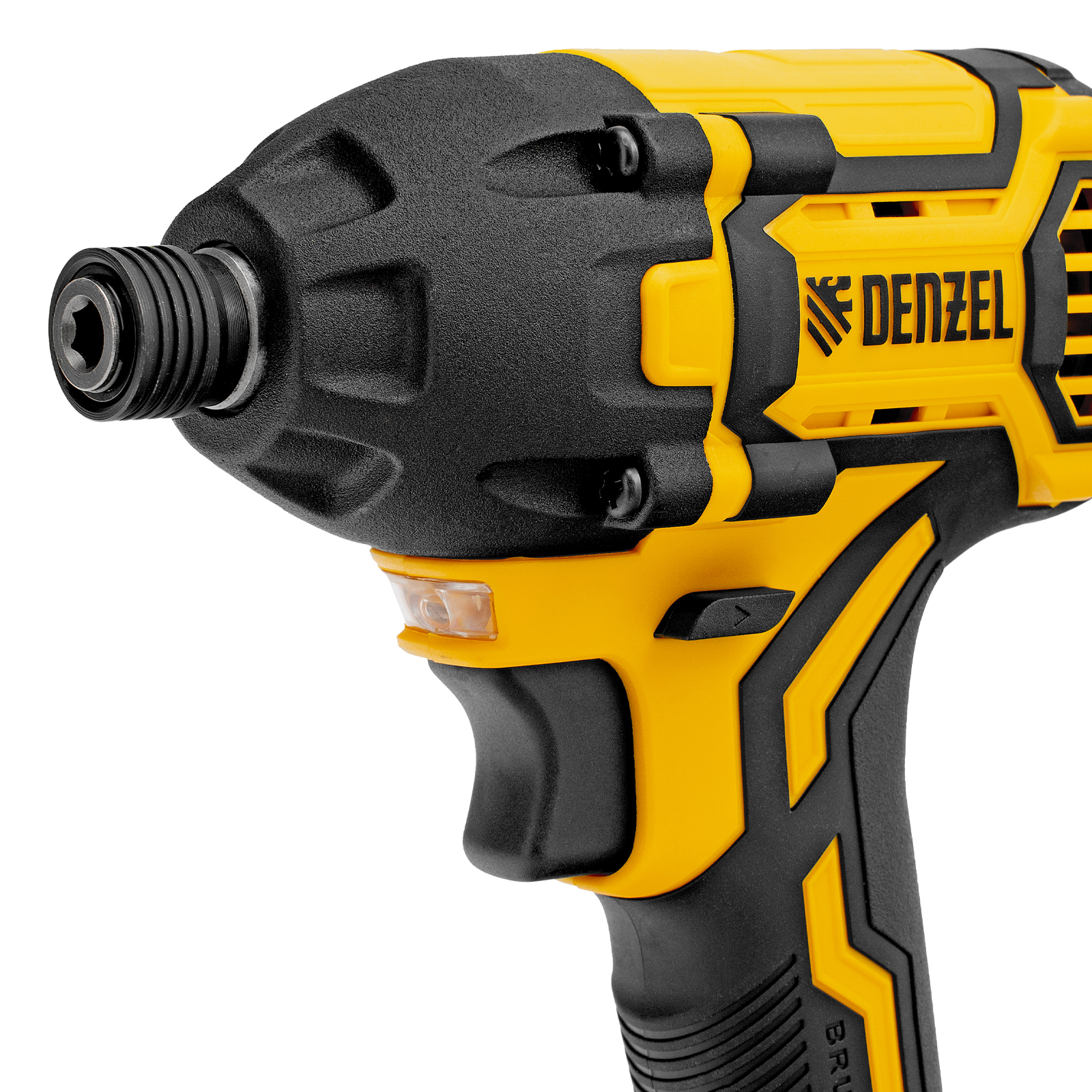 Аккумуляторный ударный винтоверт Denzel CIDH-BL-20-270 26514 с бесщеточным двигателем работает от аккумулятора Li-Ion 20 В и предназначен для работы с резьбовым крепежом: винтами, шурупами, гайками. Максимальный крутящий момент достигает 270 Н·м, что позволяет эффективно решать поставленные задачи. Частота вращения шпинделя плавно регулируется в пределах установленного диапазона путем изменения степени нажатия на клавишу выключателя — такое решение облегчает настройку оптимального режима работы. Ударный механизм позволяет успешно справляться с туго затянутым или заржавевшим крепежом.