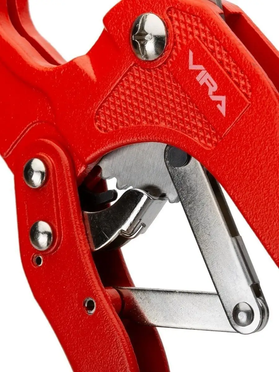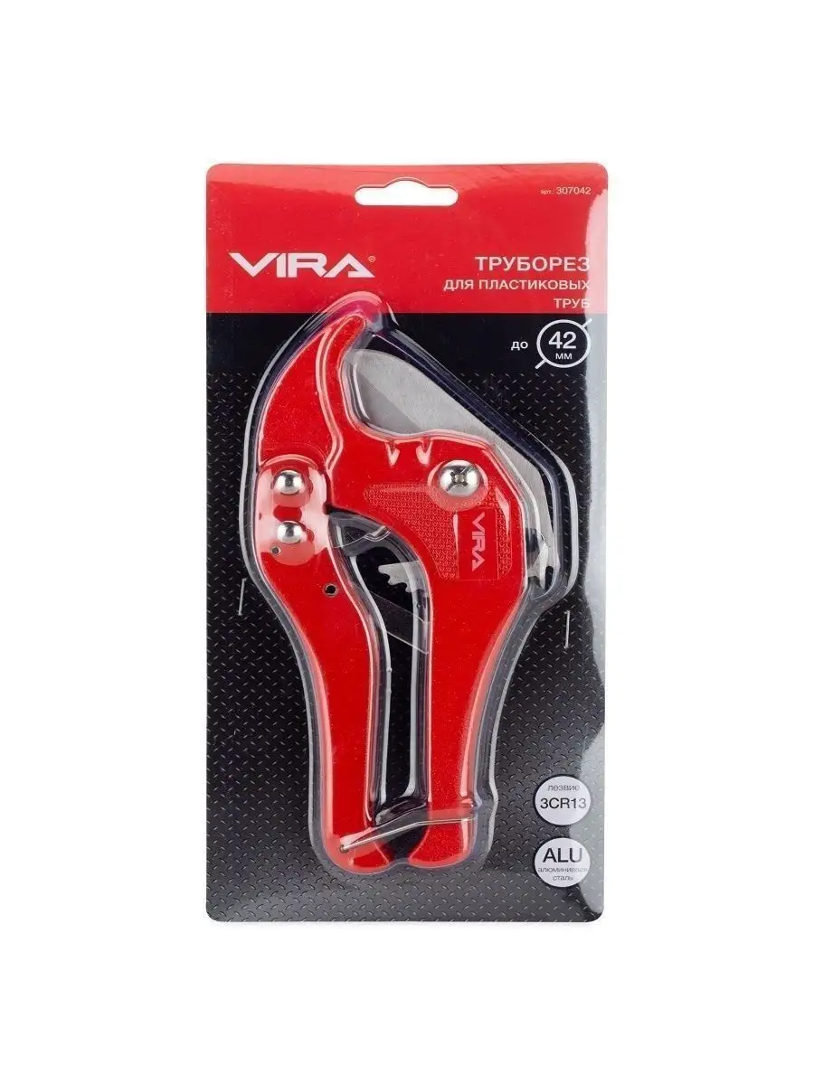 Труборез используется при монтаже трубопровода и отопительных систем для пластиковых и металопластиковых труб. Подходит для: PEX, PP, PE, PU, PEX-AL-PEX, VPE, CPVC, PVC, PVDF. Изготовлен из алюминиевого сплава .Лезвие изготовлено из нержавеющей стали 3CR13. Подходит для труб диаметром 42 мм. Инструкция по применению: 1. Освободите ручки трубореза от стопорной дуги.2.Двумя руками разведите рукоятки в стороны до упора. 3. Трубу вставьте между рабочими поверхностями и с усилием плавно сожмите рукоятки. Для работы храпового механизма разожмите рукоятки, а затем снова сожмите рукоятки. 4. Повторяйте сжатие-разжатие-сжатие до нужного результата.