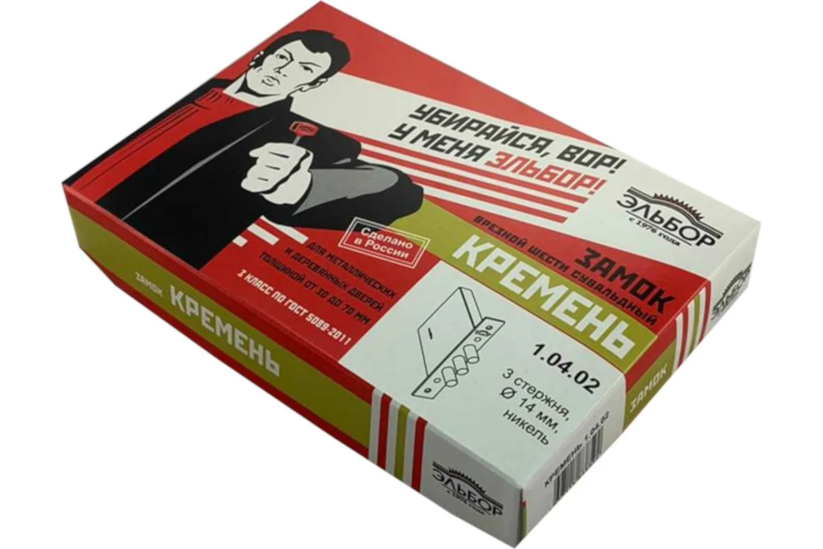 Врезной замок Эльбор Кремень 1.04.02 6-сувальдный, подходит для установки во внешние, внутренние и межкомнатные двери. Соответствует 3 классу по ГОСТ 5089-2011.