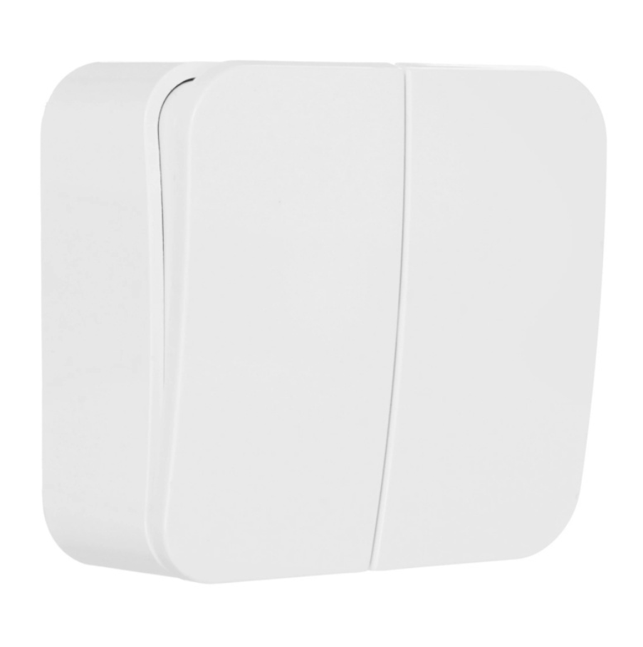 Предназначен для открытой установки. С изолирующей пластиной. Позволяет управлять двумя источниками света из одной точки.