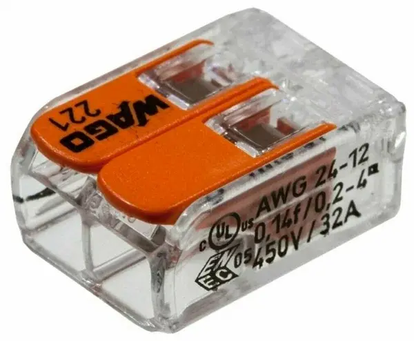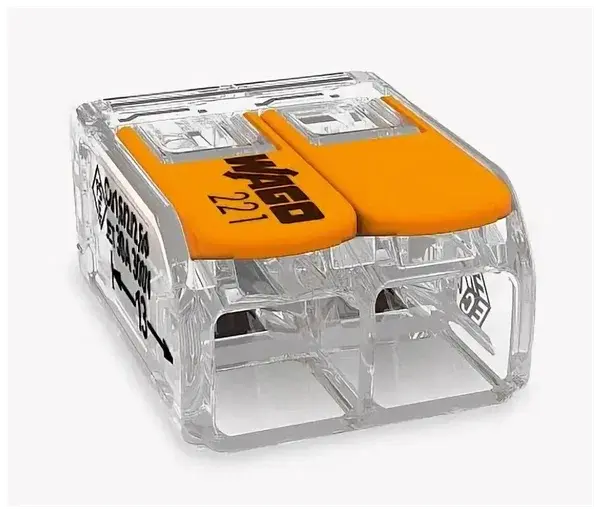 WAGO Клемма с рычажком 221-412 2 пров.(0,14-4кв.мм), б/пасты, IP20 (6шт) 184776