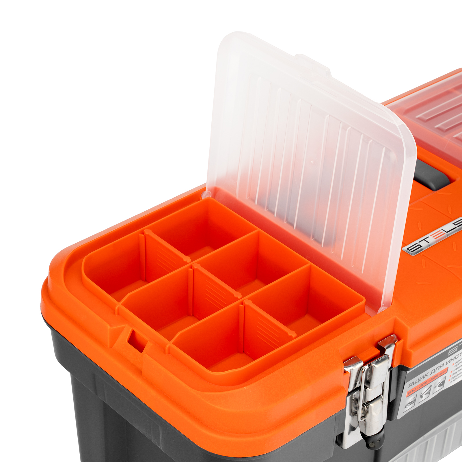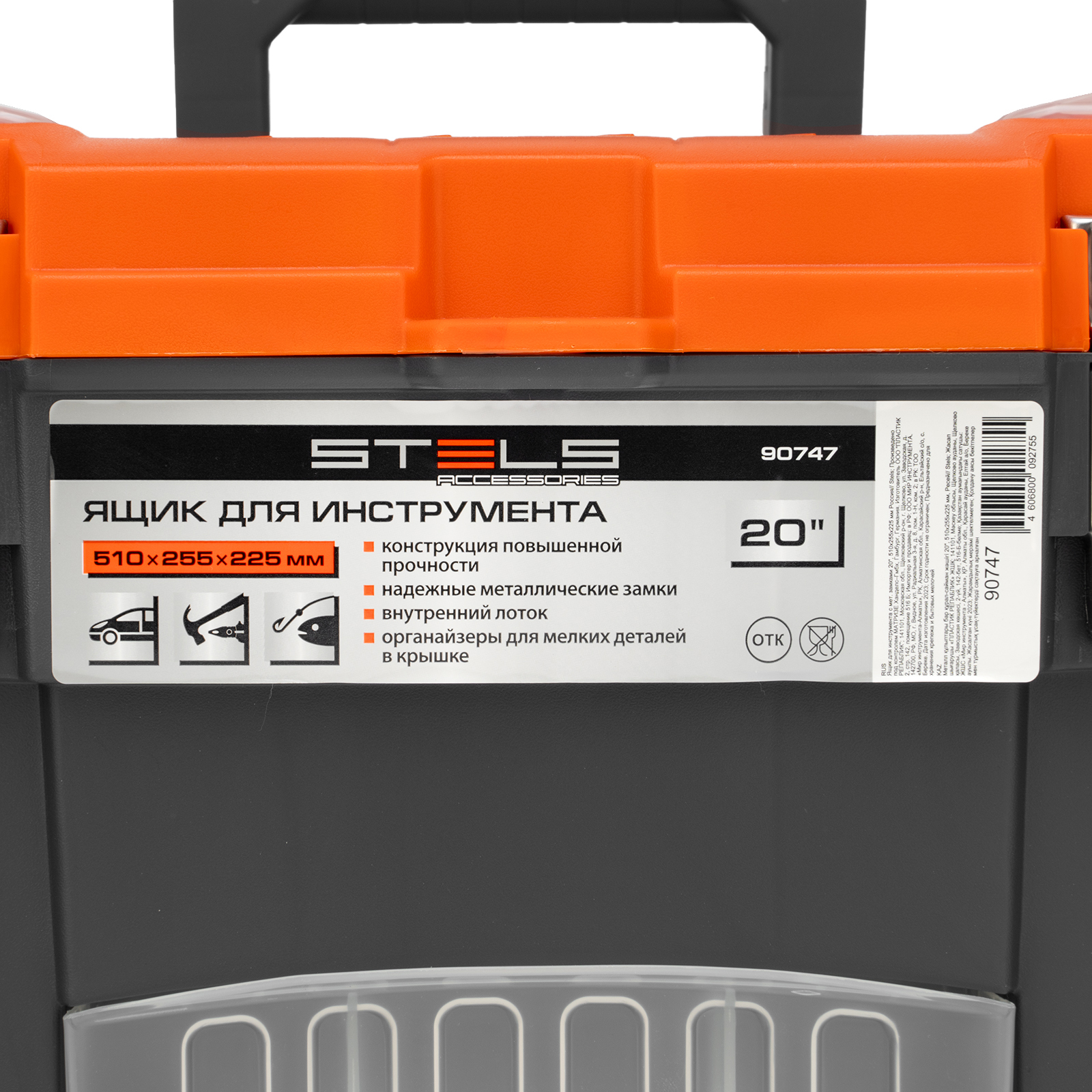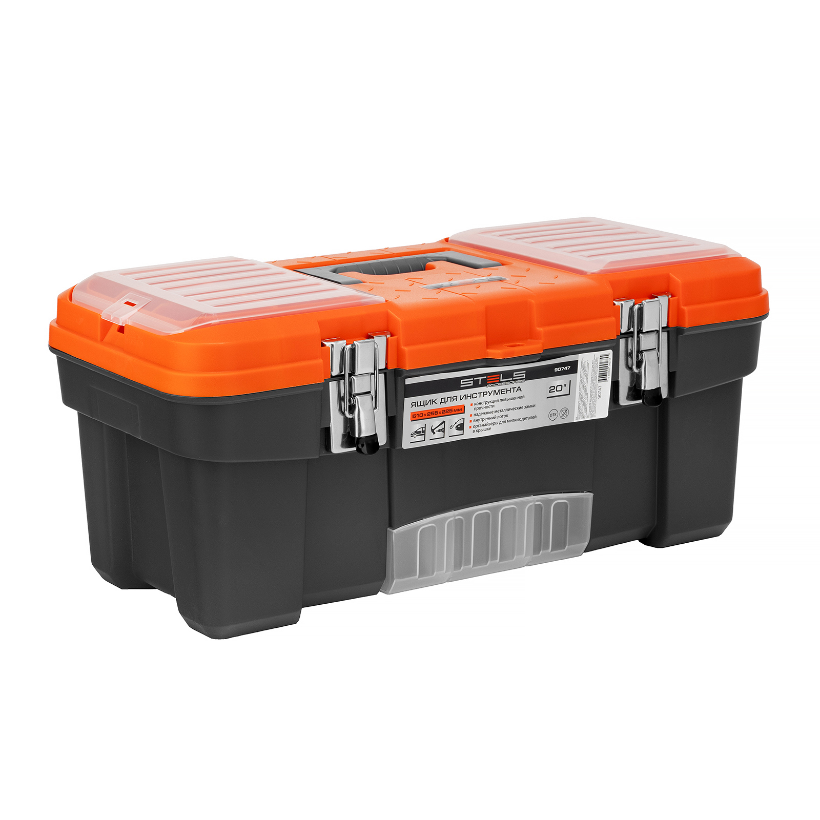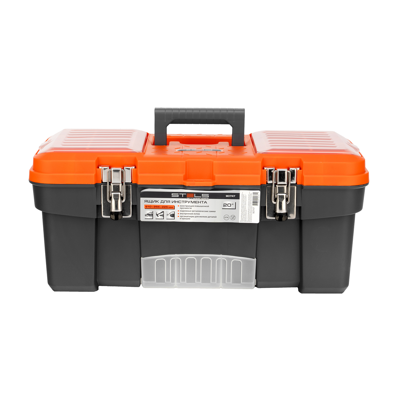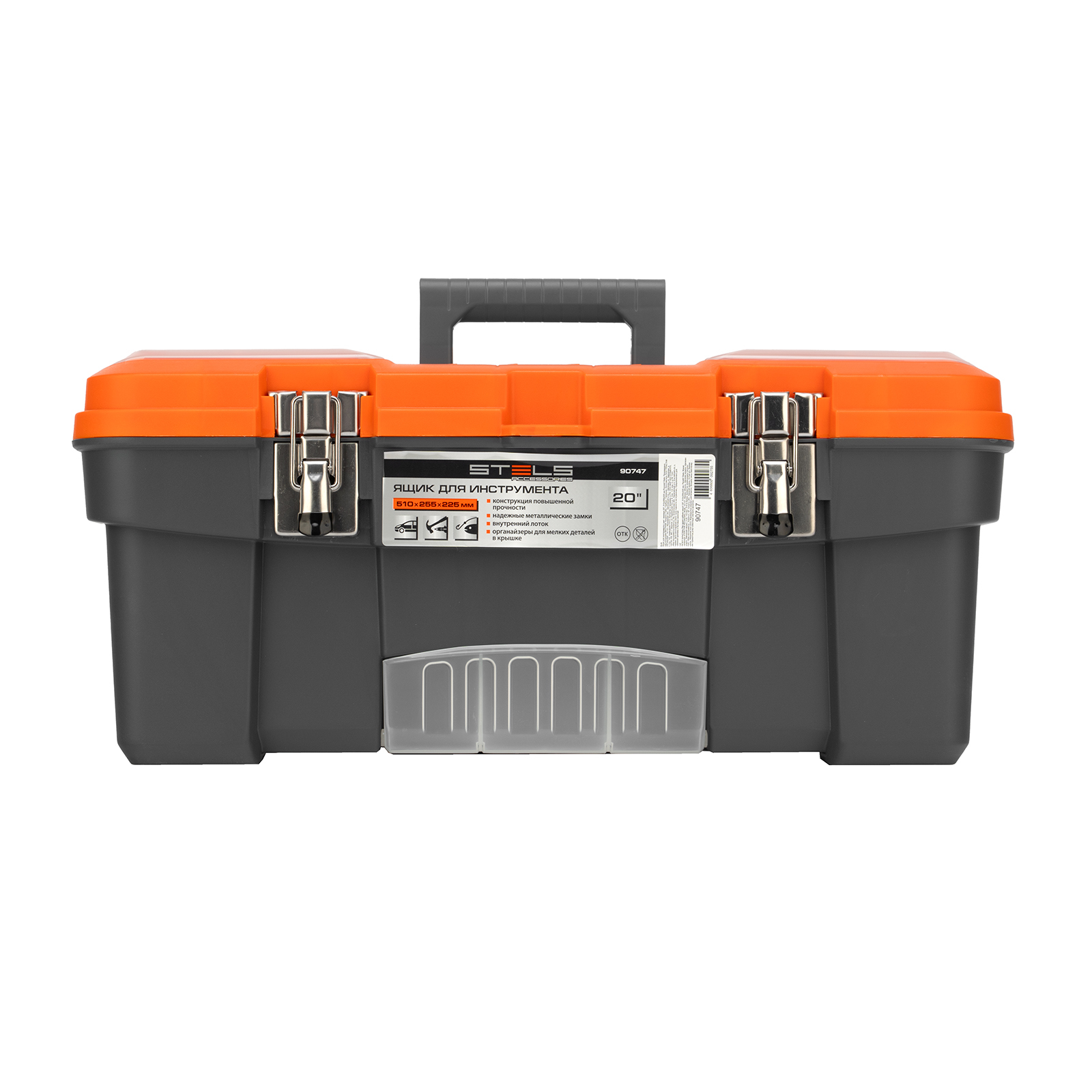 Ящик для инструмента Stels 90747 размером 20" (510 х 255 х 225 мм), с металлическими замками, — альтернатива коробке для инструментов. В нем можно расположить ручной инструмент, крепеж, хозяйственные мелочи, а также рыболовные снасти. В крышке имеются встроенные органайзеры, внутри ящика — выкидной лоток с отсеками для мелких деталей, что увеличивает функциональность изделия. Ящик удобно брать в поездки, также он пригодится дома, на даче или в гараже.
