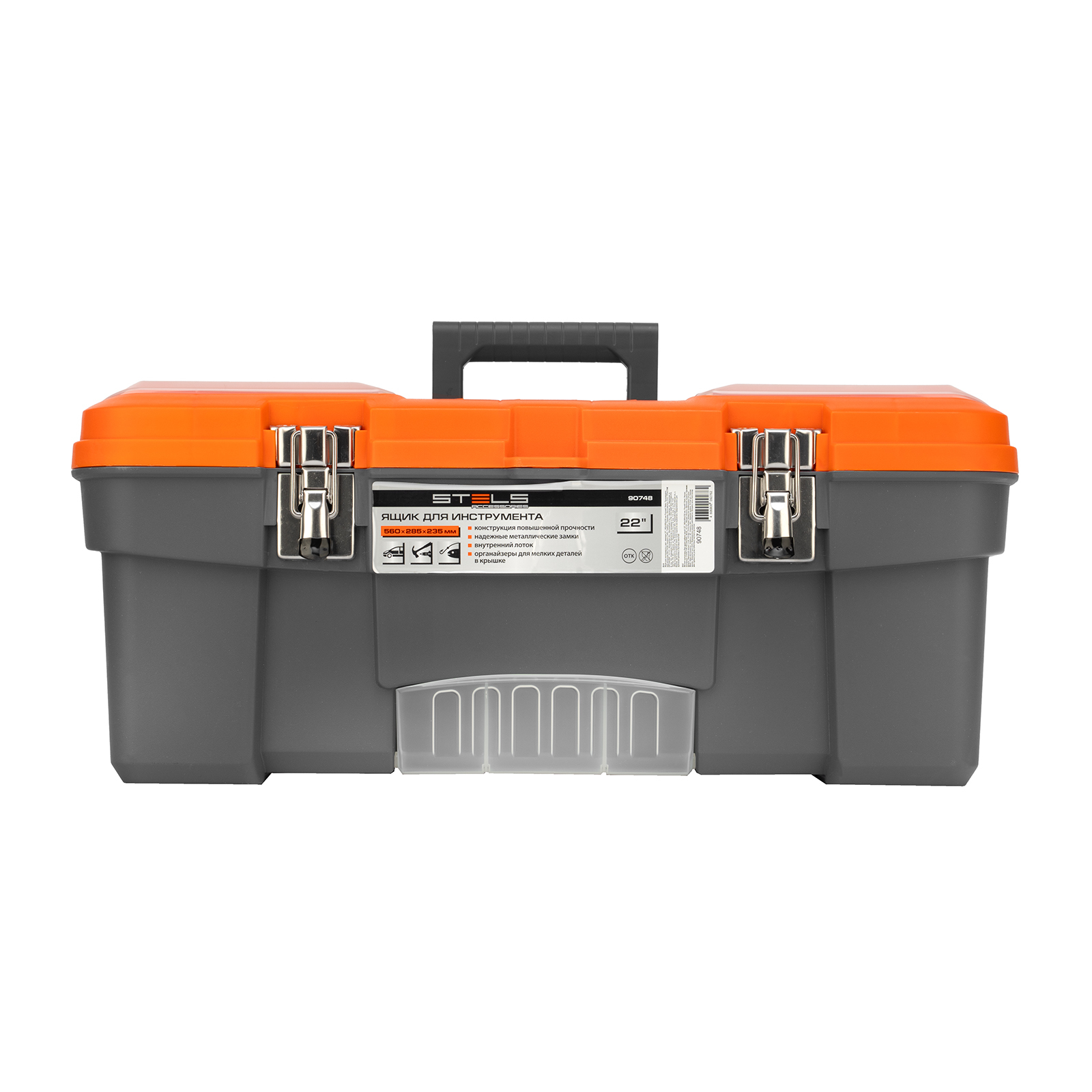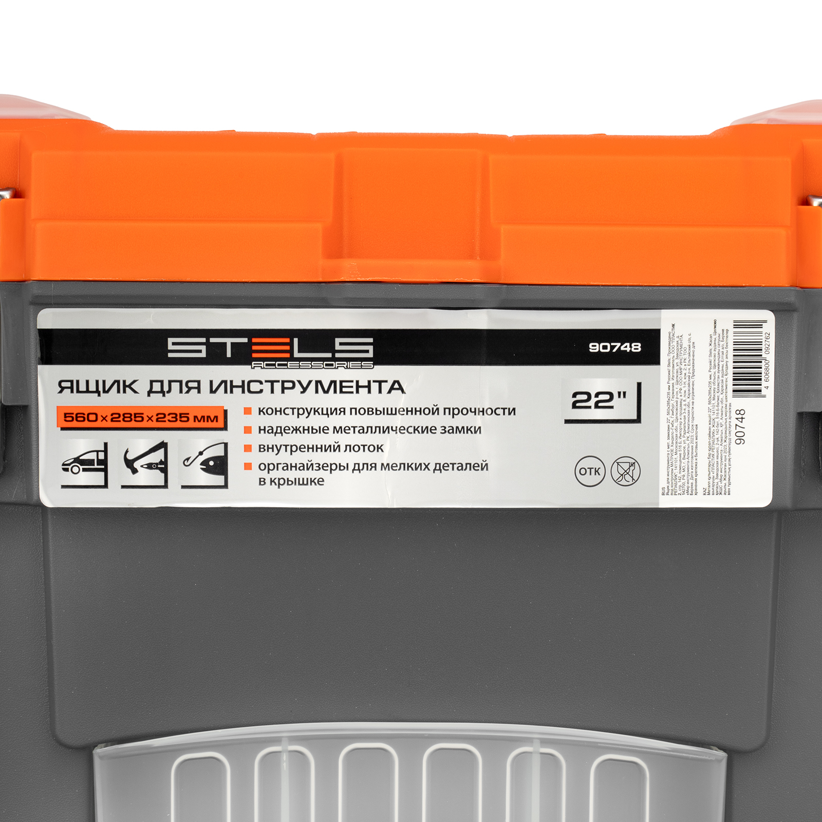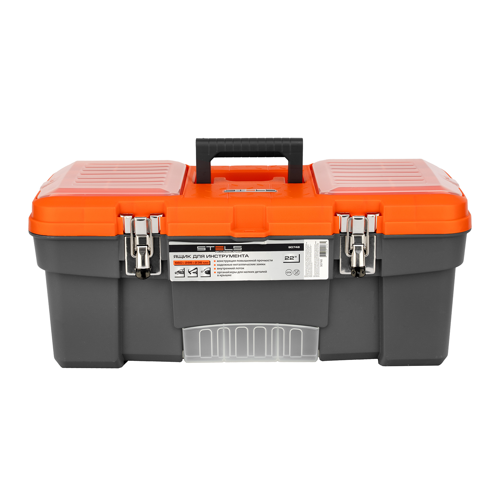 Ящик для инструмента Stels 90748 размером 22" (560 х 285 х 235 мм), с металлическими замками, — альтернатива коробке для инструментов. В нем можно расположить ручной инструмент, крепеж, хозяйственные мелочи, а также рыболовные снасти. В крышке имеются встроенные органайзеры, внутри ящика — выкидной лоток с отсеками для мелких деталей, что увеличивает функциональность изделия. Ящик удобно брать в поездки, также он пригодится дома, на даче или в гараже.