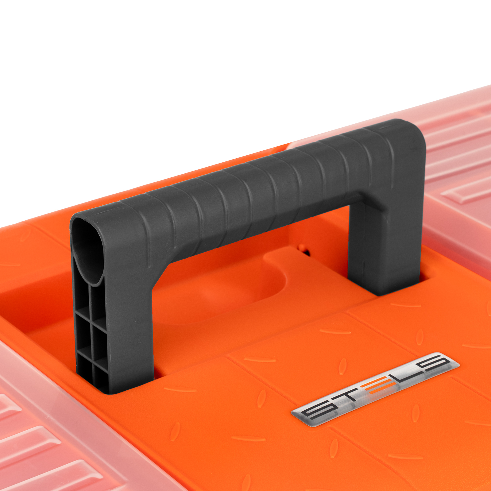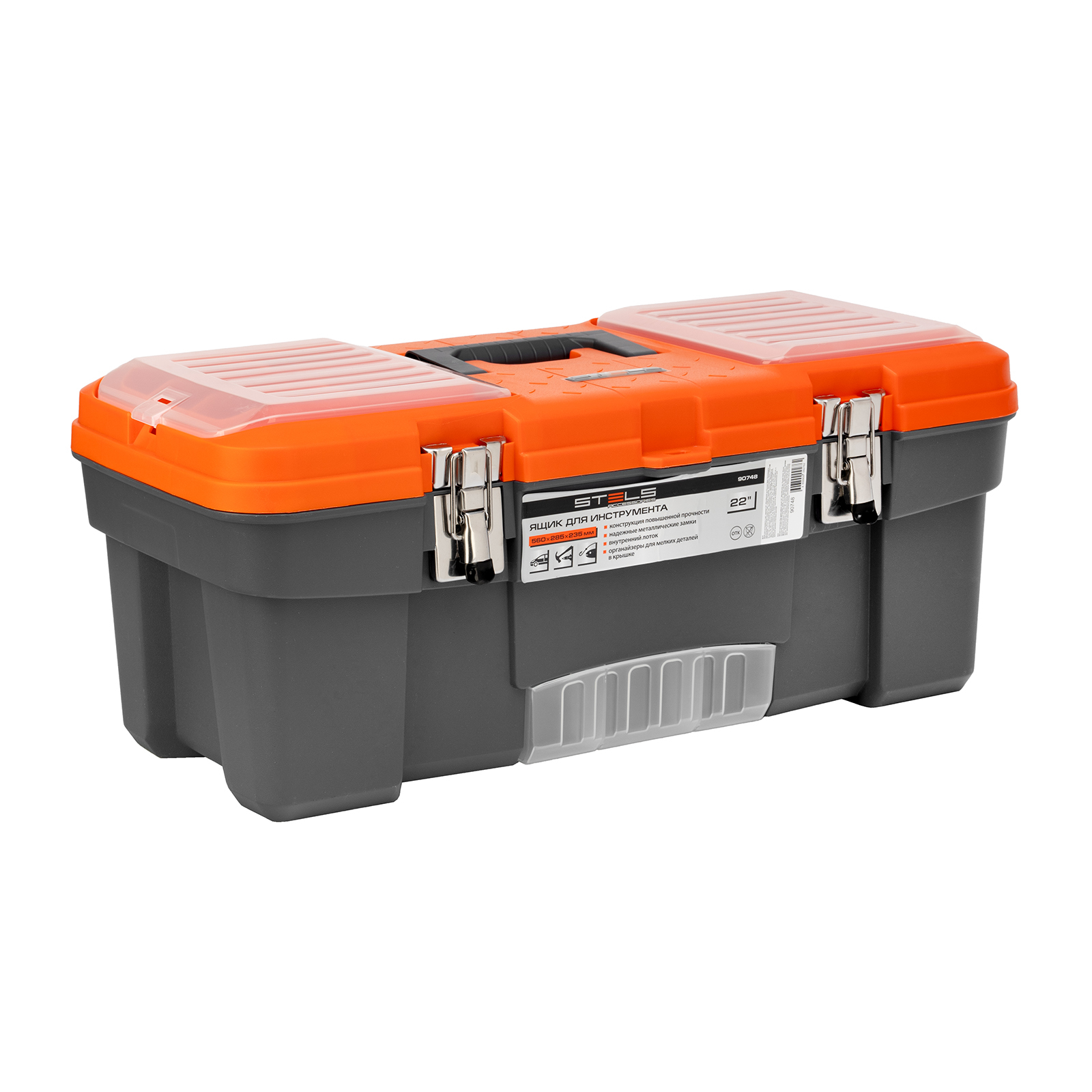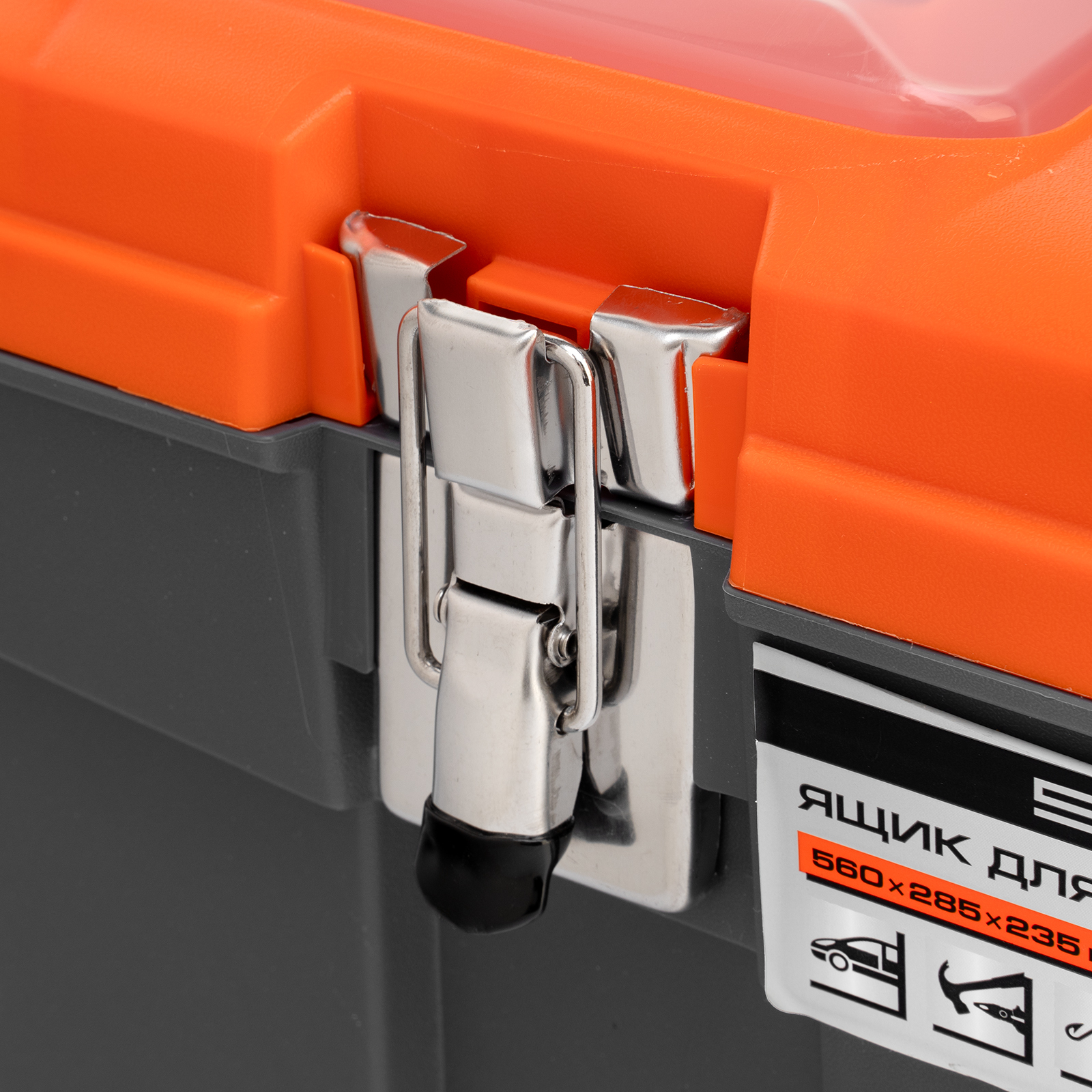 Ящик для инструмента Stels 90748 размером 22" (560 х 285 х 235 мм), с металлическими замками, — альтернатива коробке для инструментов. В нем можно расположить ручной инструмент, крепеж, хозяйственные мелочи, а также рыболовные снасти. В крышке имеются встроенные органайзеры, внутри ящика — выкидной лоток с отсеками для мелких деталей, что увеличивает функциональность изделия. Ящик удобно брать в поездки, также он пригодится дома, на даче или в гараже.