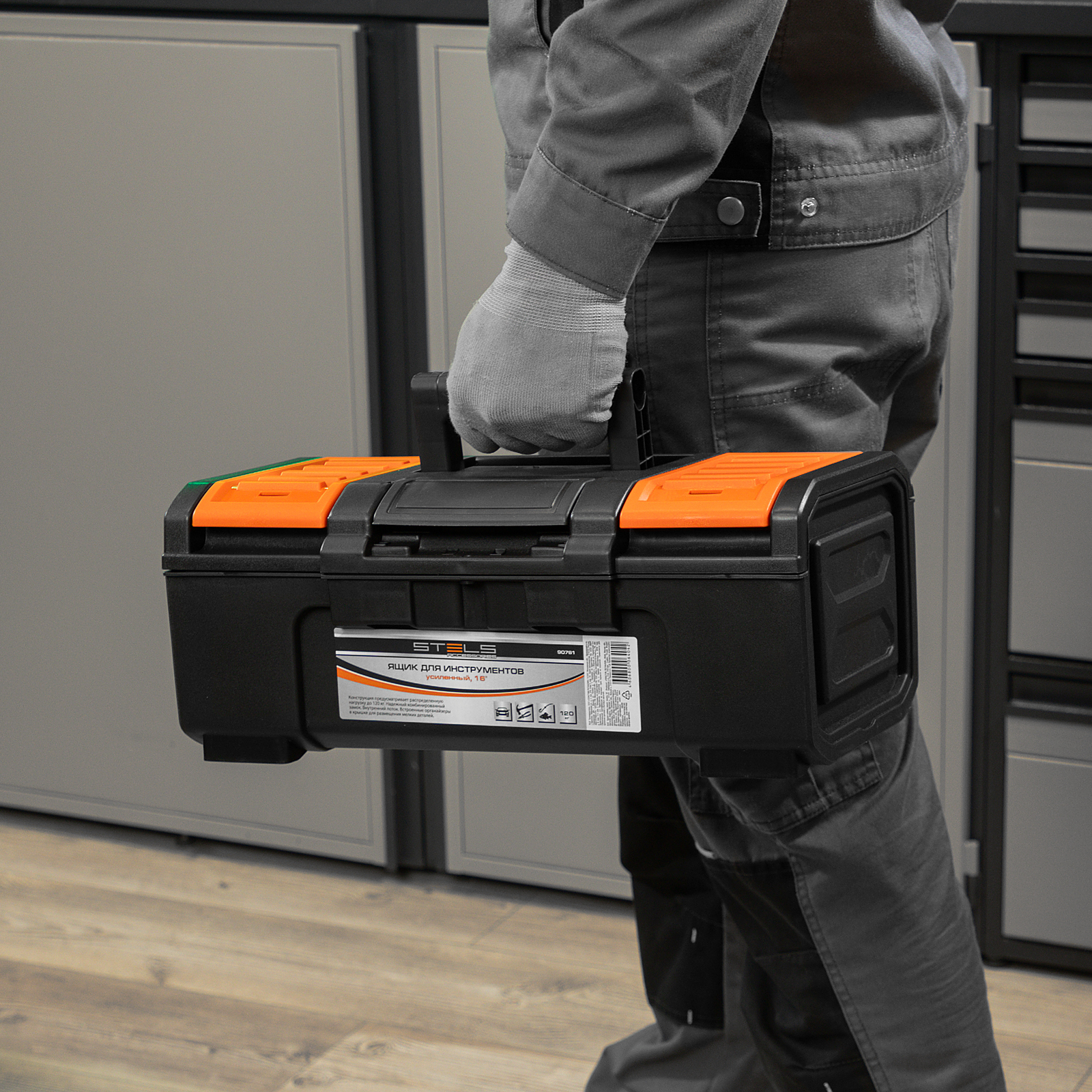 Усиленный ящик для инструментов Stels 90761 длиной 16" используется для хранения и транспортировки ручного и электроинструмента, а также хозяйственных мелочей или рыболовных принадлежностей. Заменяет коробку для инструментов, а также может служить рыболовным ящиком. Пригодится дома, в поездке, а также в гараже или на даче.
