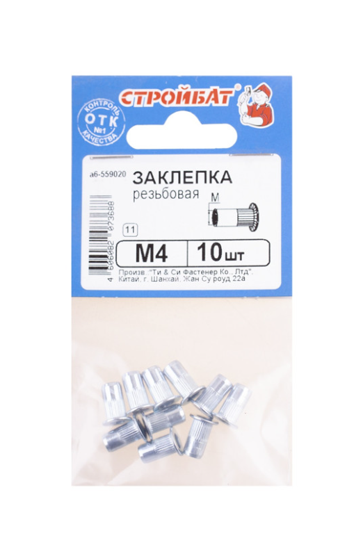 Заклепка резьбовая М 4 (цинк 10 шт) 559020