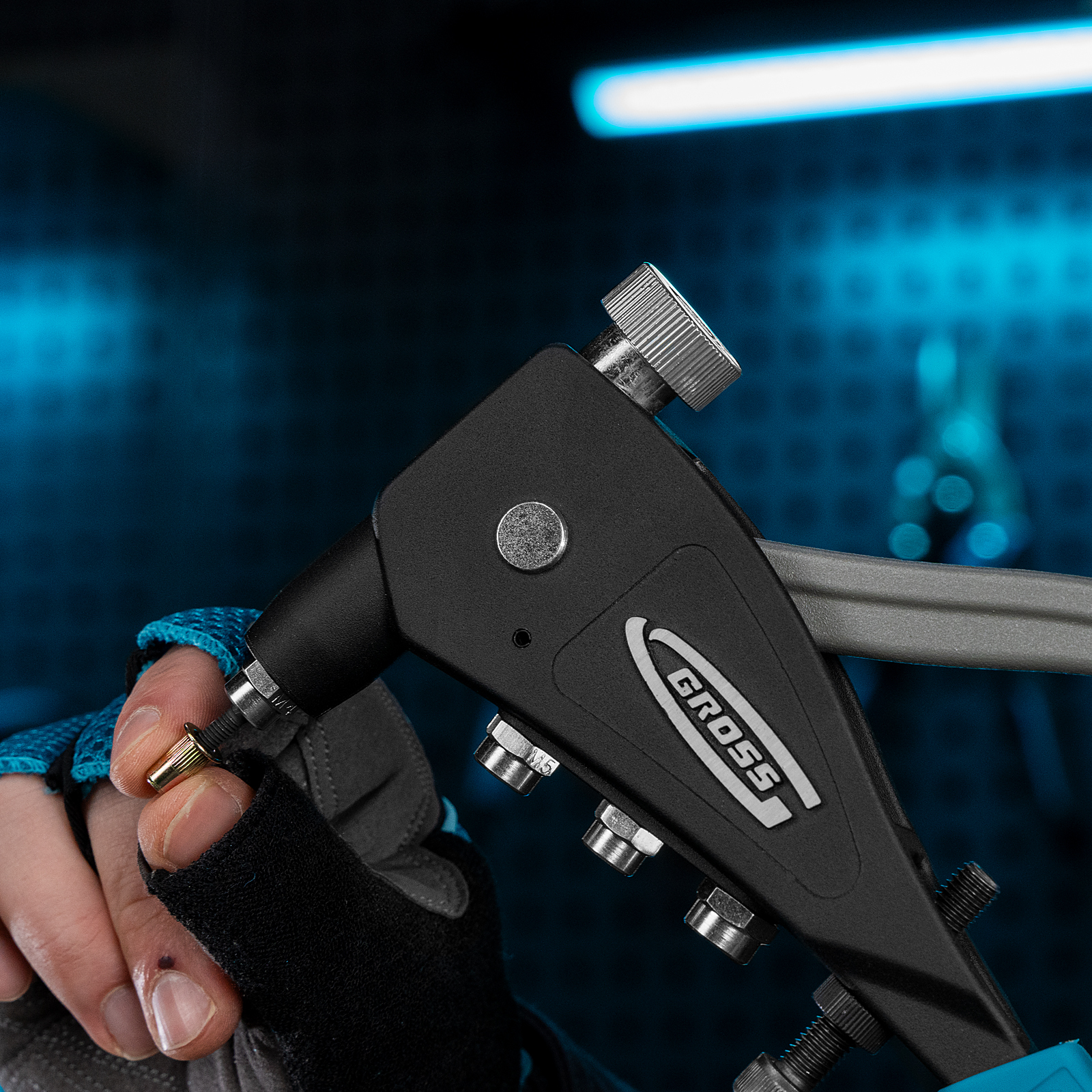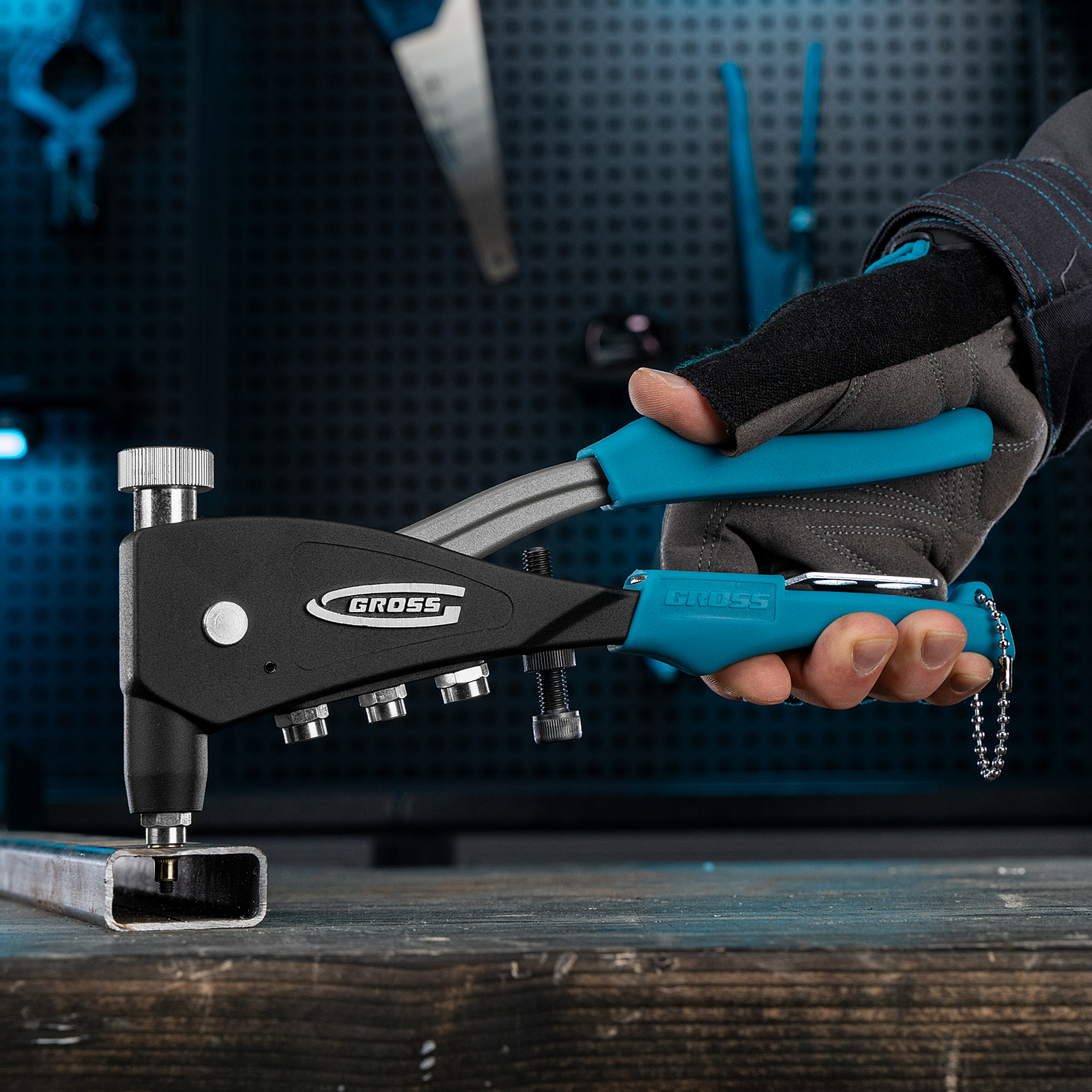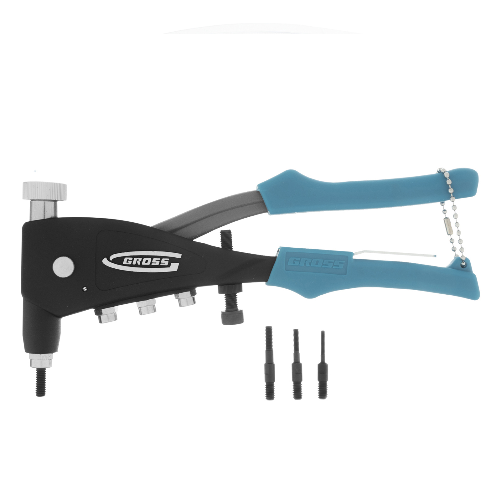 Ручной заклепочник Gross 40410 предназначен для создания неразъемных соединений при помощи резьбовых заклепок. Заклепки из алюминия, стали (М3, М4, М5, М6) или нержавеющей стали (М3, М4, М5) позволяют прочно зафиксировать листовые заготовки, металлический профиль и легкие конструкции. Для каждого типоразмера предусмотрена соответствующая головка. Полученные с помощью заклепочника соединения допускают установку соответствующих винтов для подвешивания различных конструкций. Заклепочник применяется для строительных, монтажных работ, будет полезен дома, в гараже или на даче.