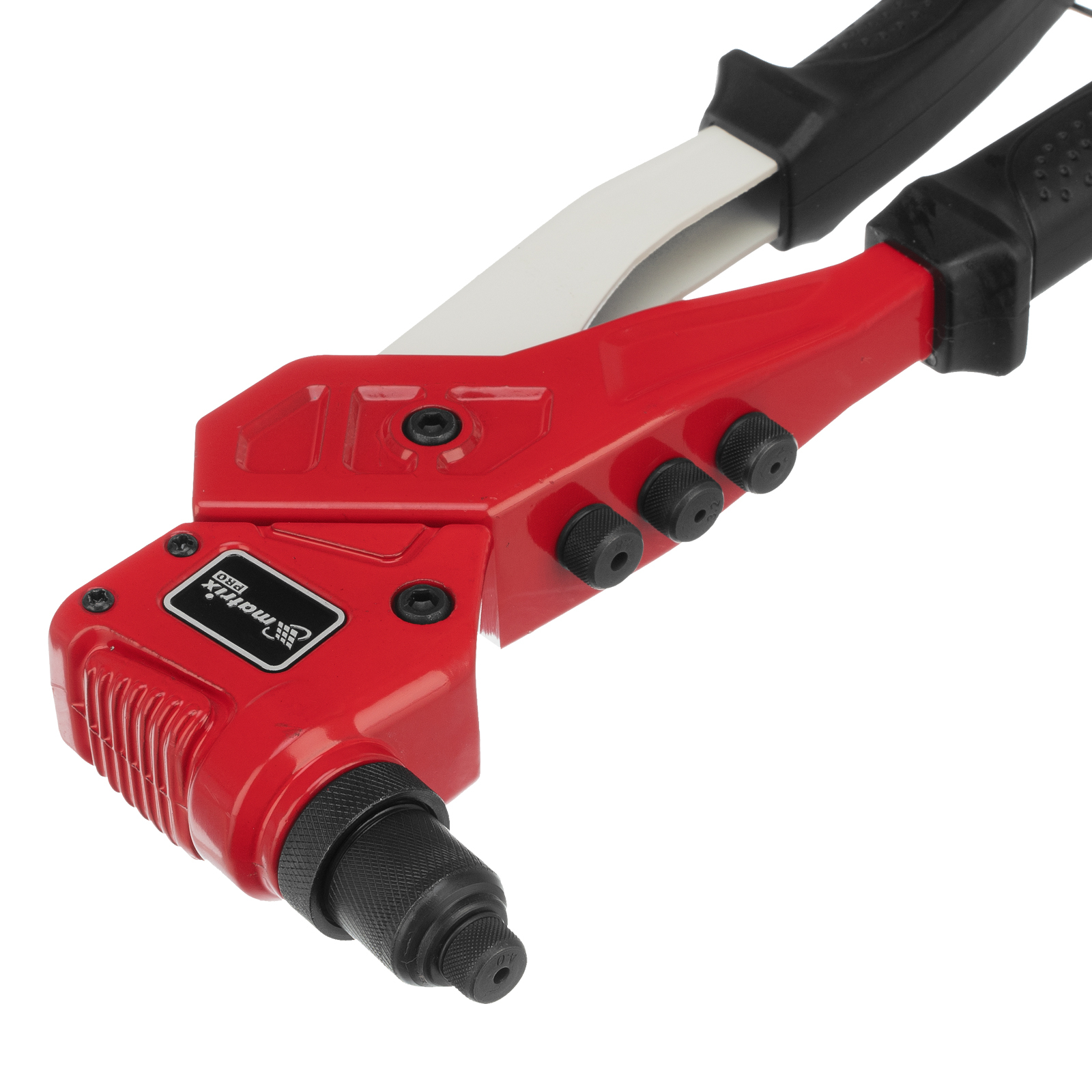 Литой ручной заклепочник Matrix PRO 40547 длиной 290 мм, поворотный на 0-360°, используется для создания неразъемных соединений с помощью вытяжных заклепок типоразмера 2,4-3,2-4,0-4,8 мм. Голова инструмента вращается на 360°, что упрощает работу в ограниченном пространстве. Заклепочник пригодится на производстве, в ремонтной мастерской, также будет полезен в быту.
