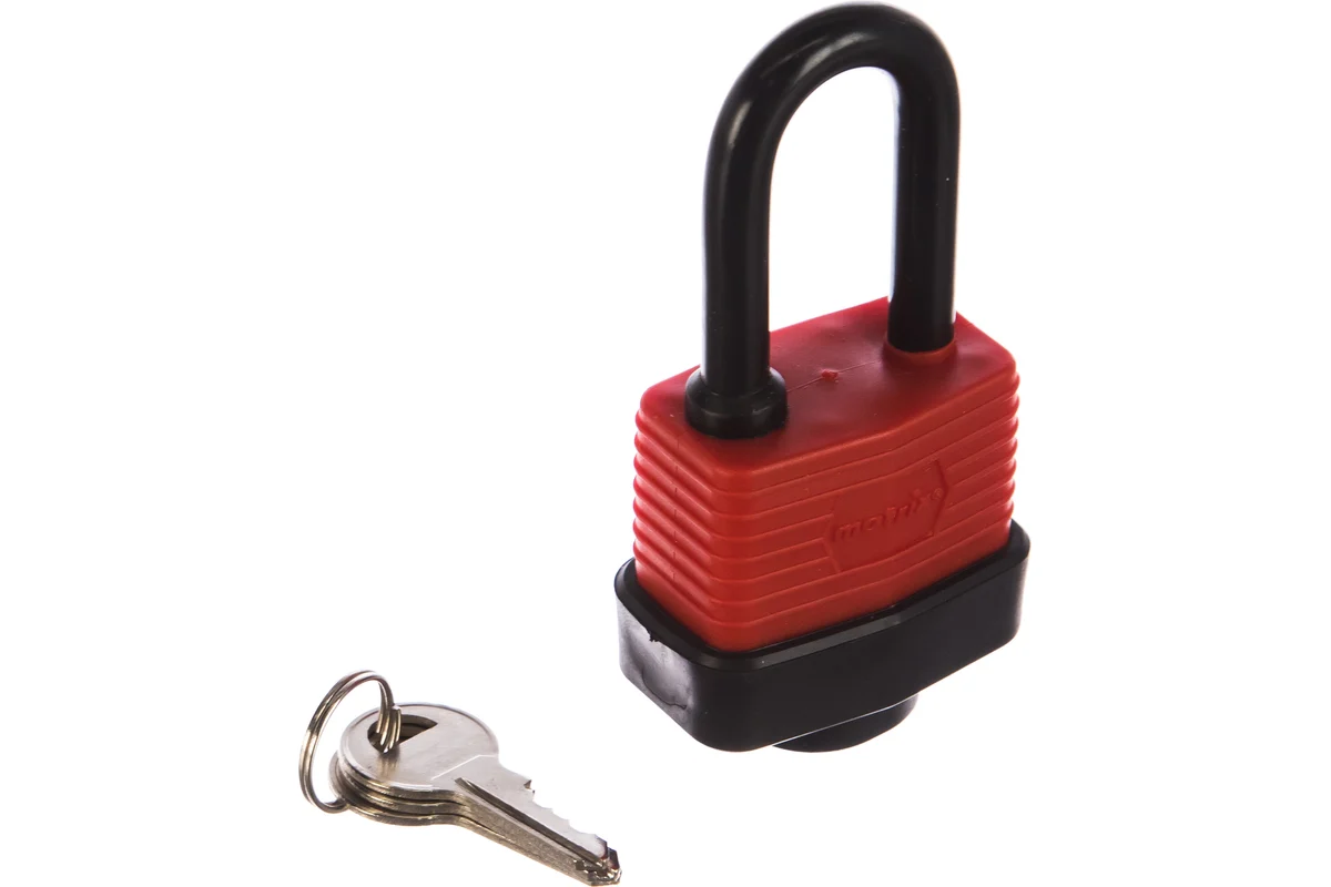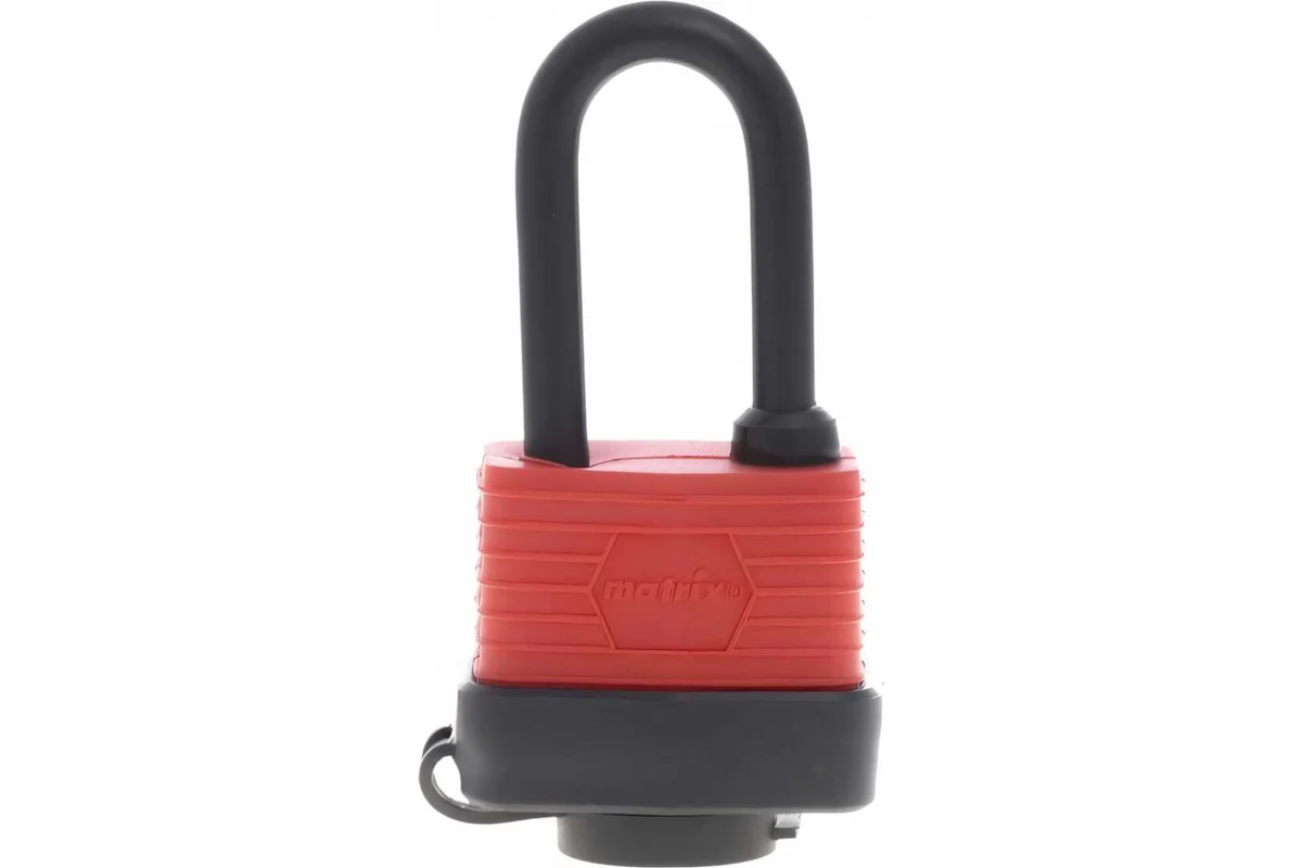 Навесной всепогодный замок Matrix 91822 шириной 40 мм, с удлиненной дужкой, вешается на дверь и обеспечивает сохранность имущества. Поможет защитить от несанкционированного проникновения сарай, гараж, подвал и другие помещения, подходит для высоких запорных петель.