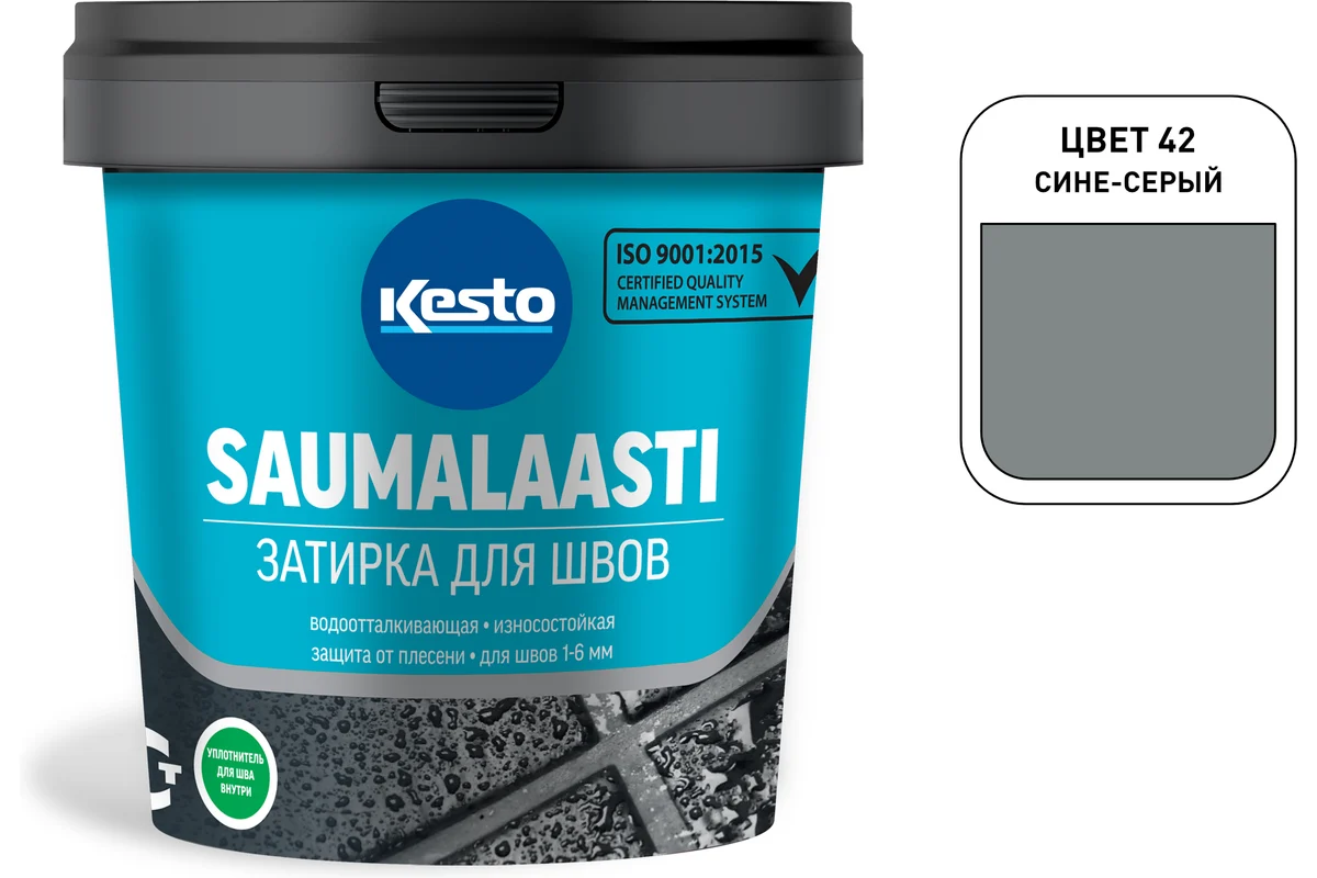 Kesto Saumalaasti — затирка c cверхнизким выделением вредных летучих веществ для заделки швов между кафельными и клинкерными плитками, а также между другими керамическими материалами. Ширина шва 1-6 мм. Глубина шва должна быть не менее 3 мм. Раствор подходит для заполнения швов на полах и стенах внутри и снаружи помещений.