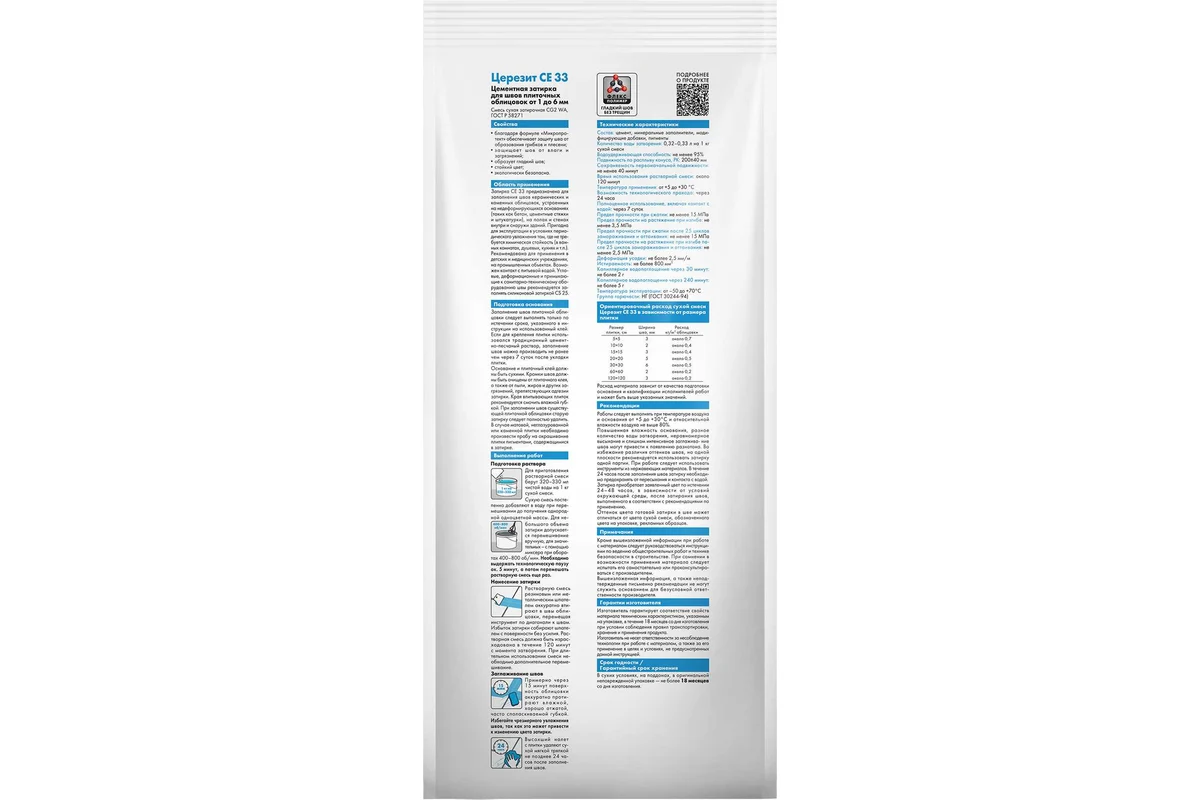 Затирка Церезит СE 33 жасмин №40 фольга 2 кг 1/12 48596 2092224 - цветной состав на цементной основе предназначен для заполнения швов керамических и каменных облицовок, устроенных на недеформирующихся основаниях (таких, как бетон, цементные стяжки и штукатурки), на полах и стенах, внутри и снаружи зданий, при ширине шва до 6 мм. Допускается использование для затирки швов в отделке бассейнов внутри помещений.